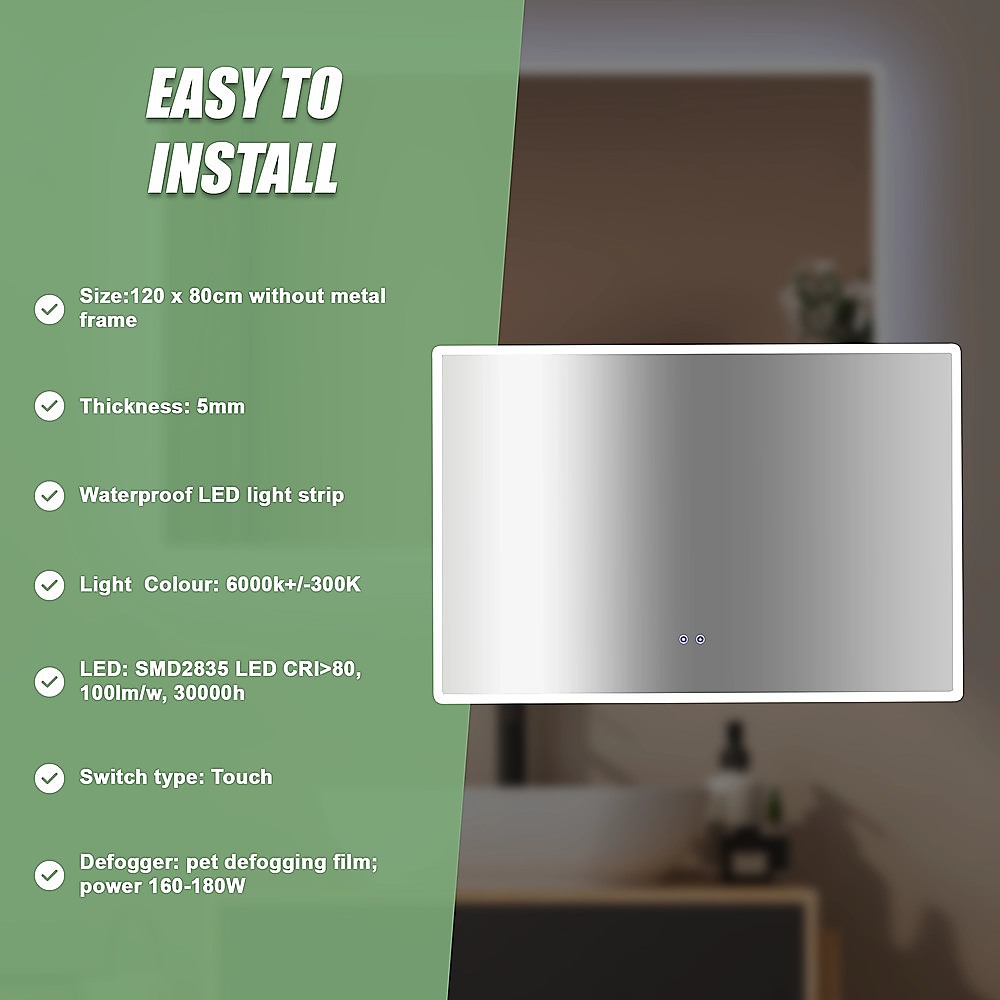 Rectangular Mirror LED Anti-Fog Illuminated Bathroom Living Room – 120x80cm