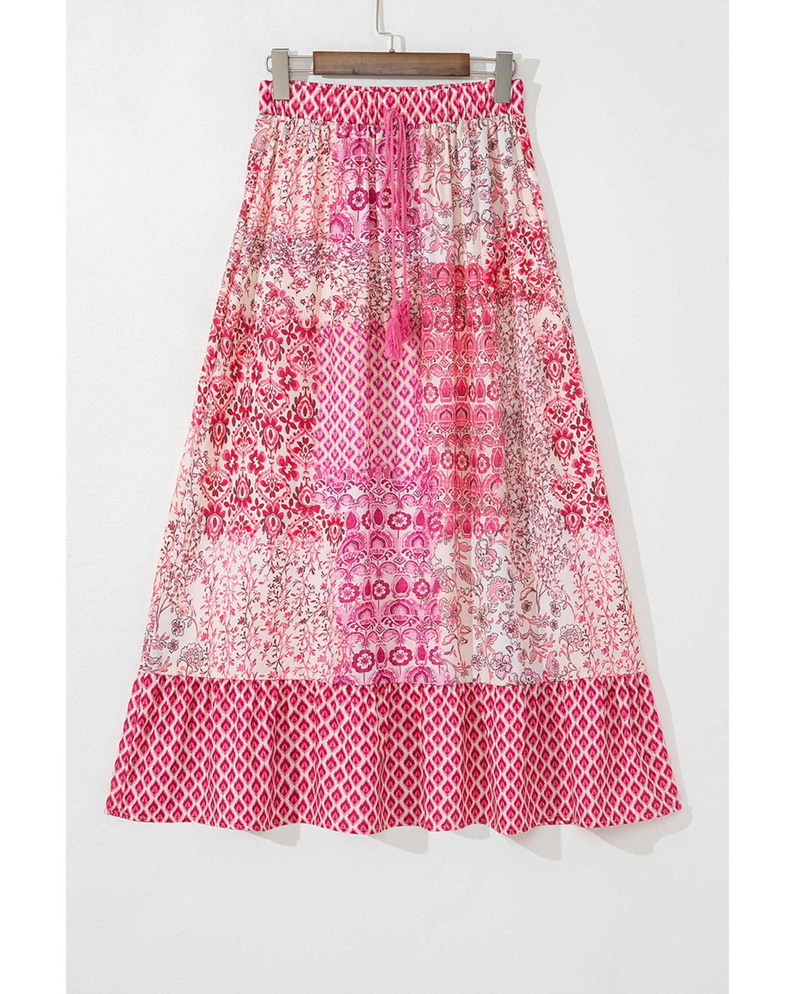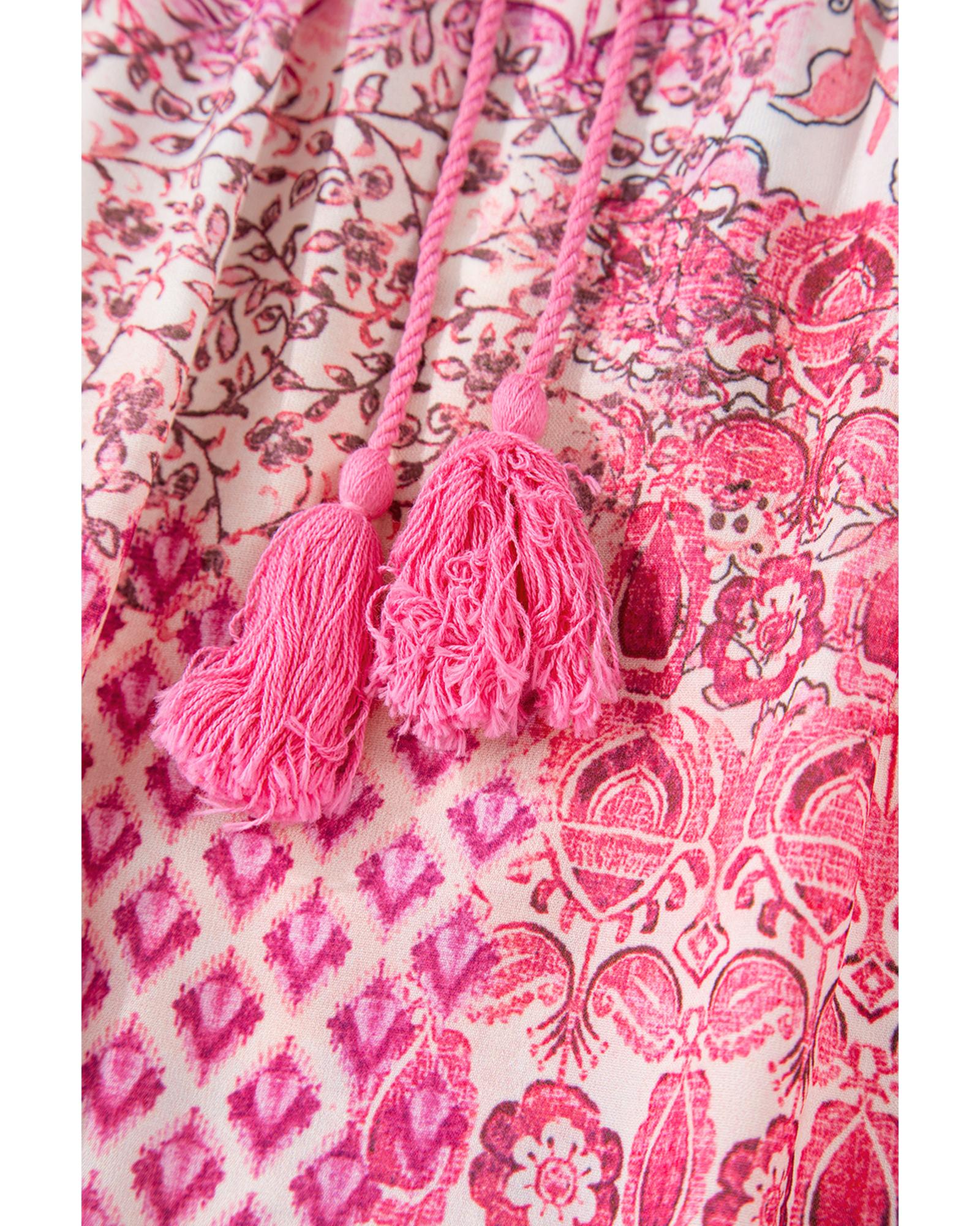 Red Boho Pattern Print Tassel Drawstring High Waist Maxi Dress – XL