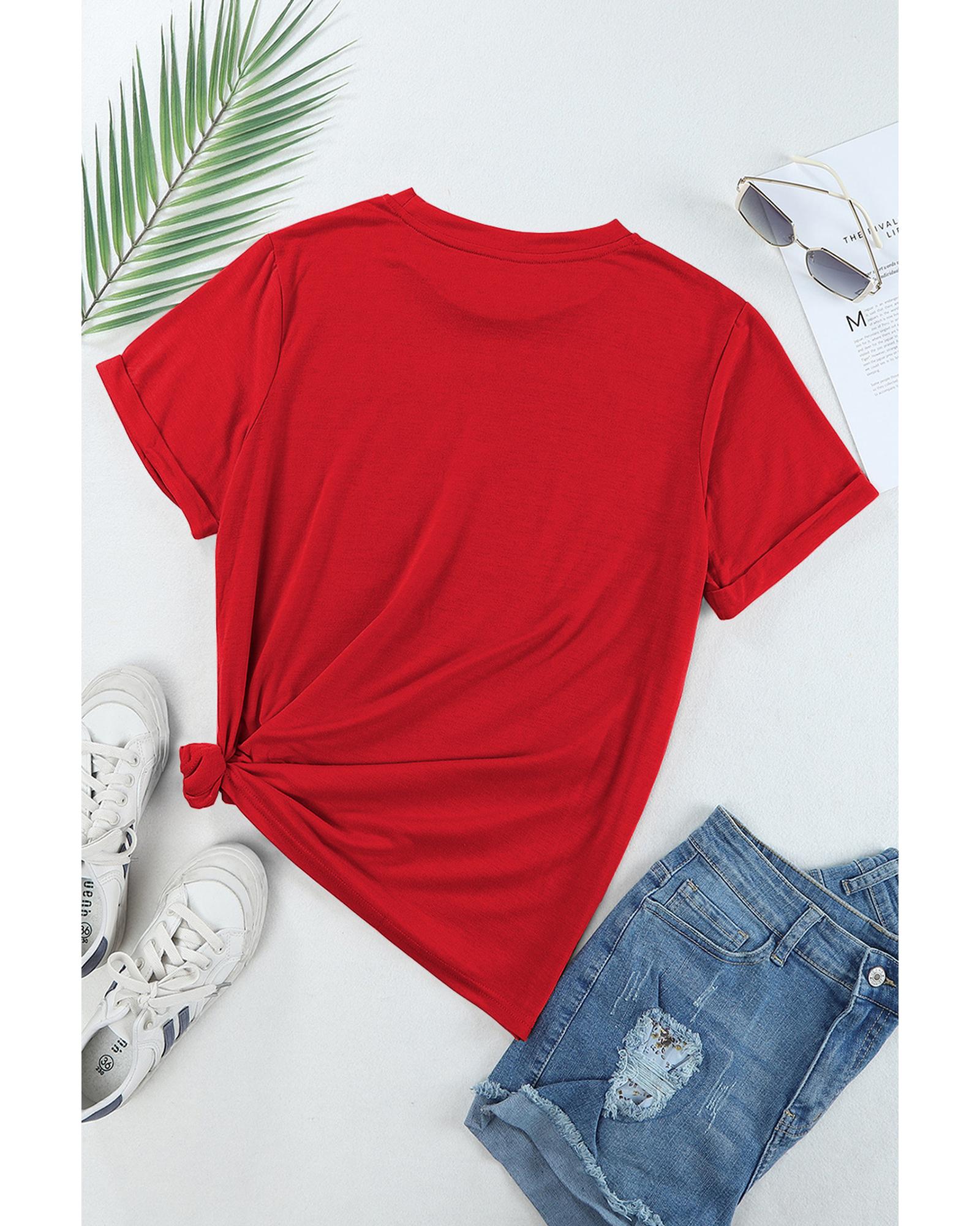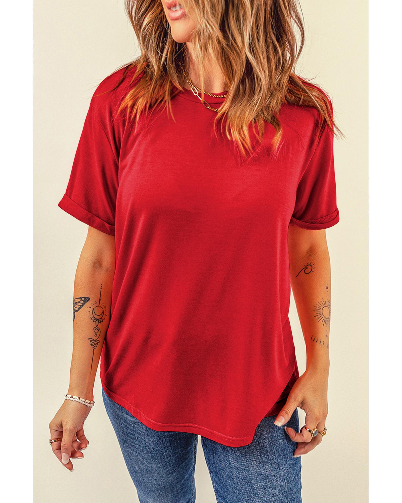 - Classic Red Casual Plain Crew Neck Tee