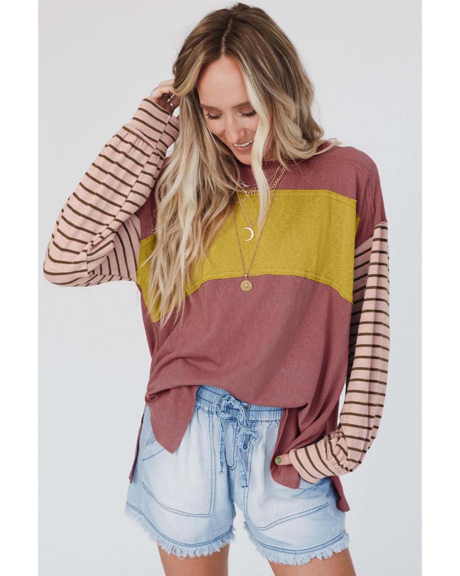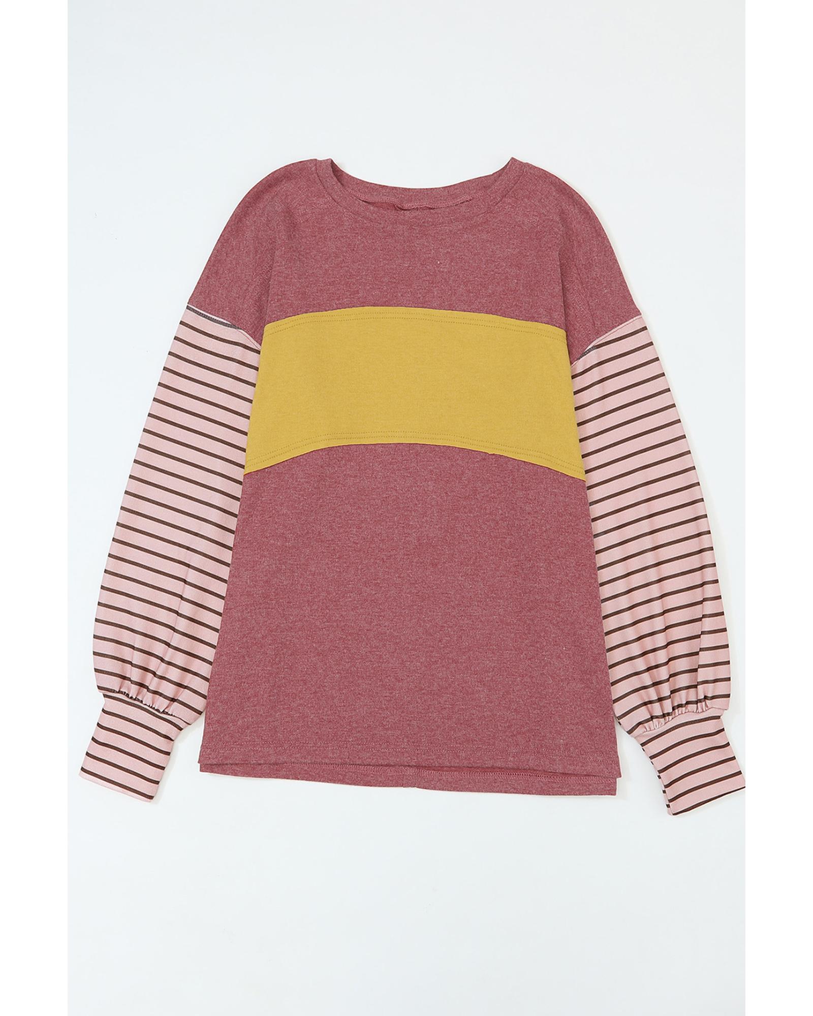 Red Colorblock Striped Bishop Sleeve Top – S