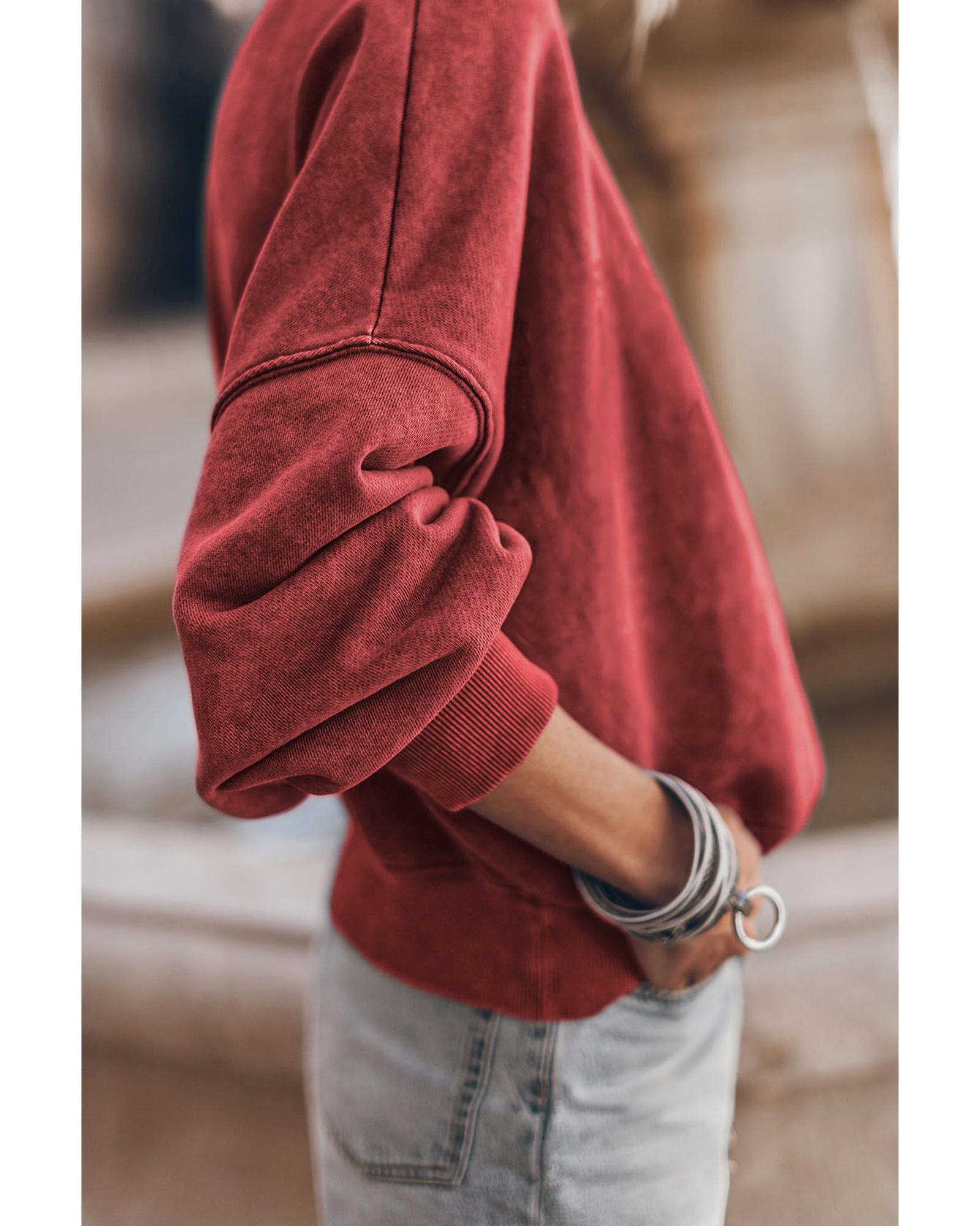Red Dahlia Drop Shoulder Crew Neck Pullover Sweatshirt – S