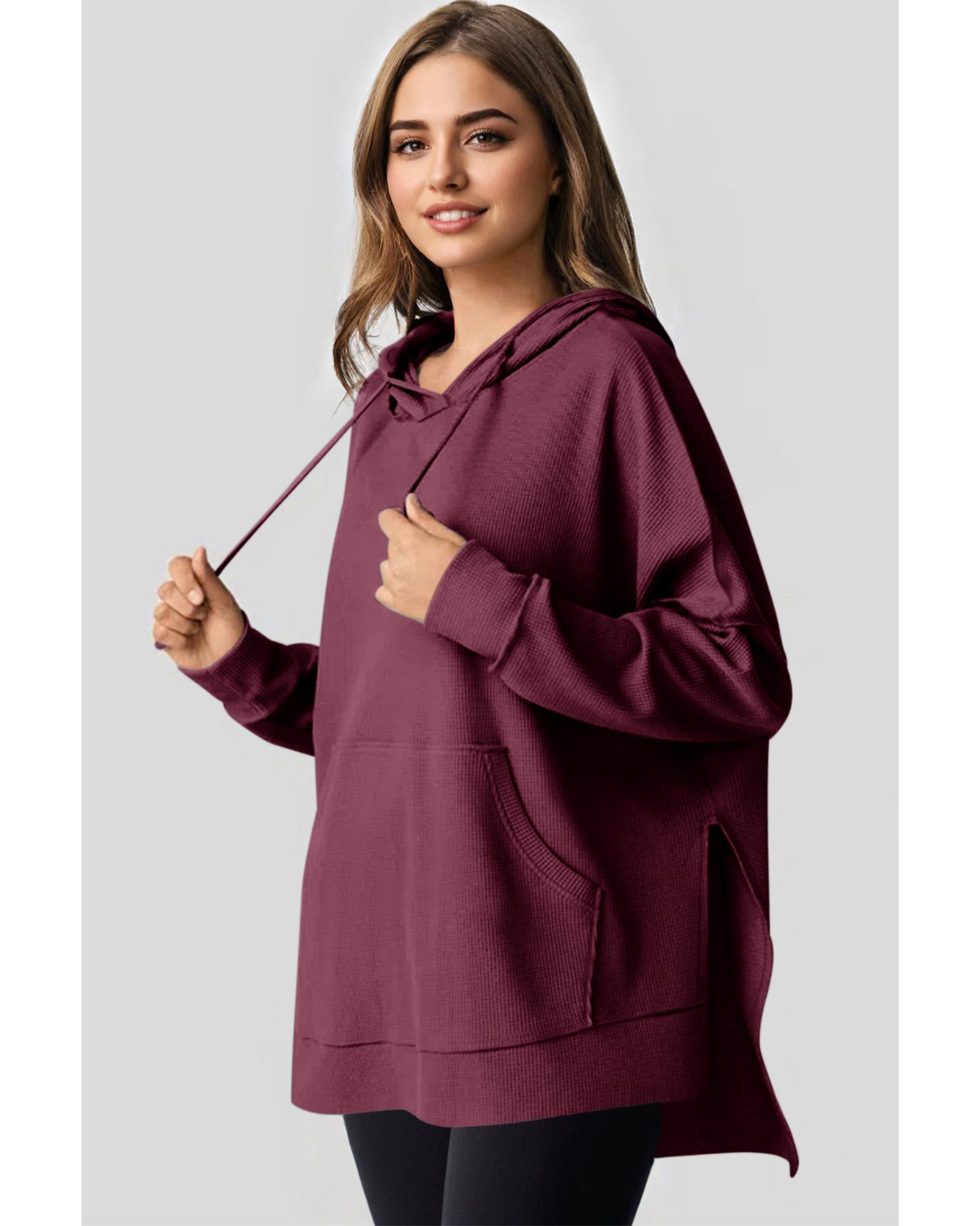 Red Dahlia Waffle Knit Fleece Lined High Low Oversized Hoodie – S