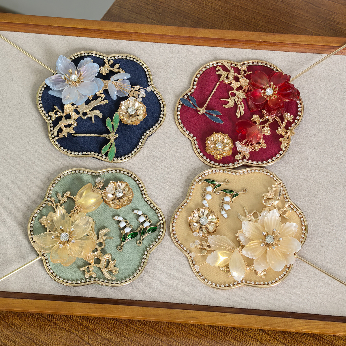 • Elegant & Intricate Design: Inspired by traditional Chinese aesthetics, each fan features beautiful floral embroidery, shimmering faux pearls, and a delicate dragonfly embellishment, all set against a rich fabric background.