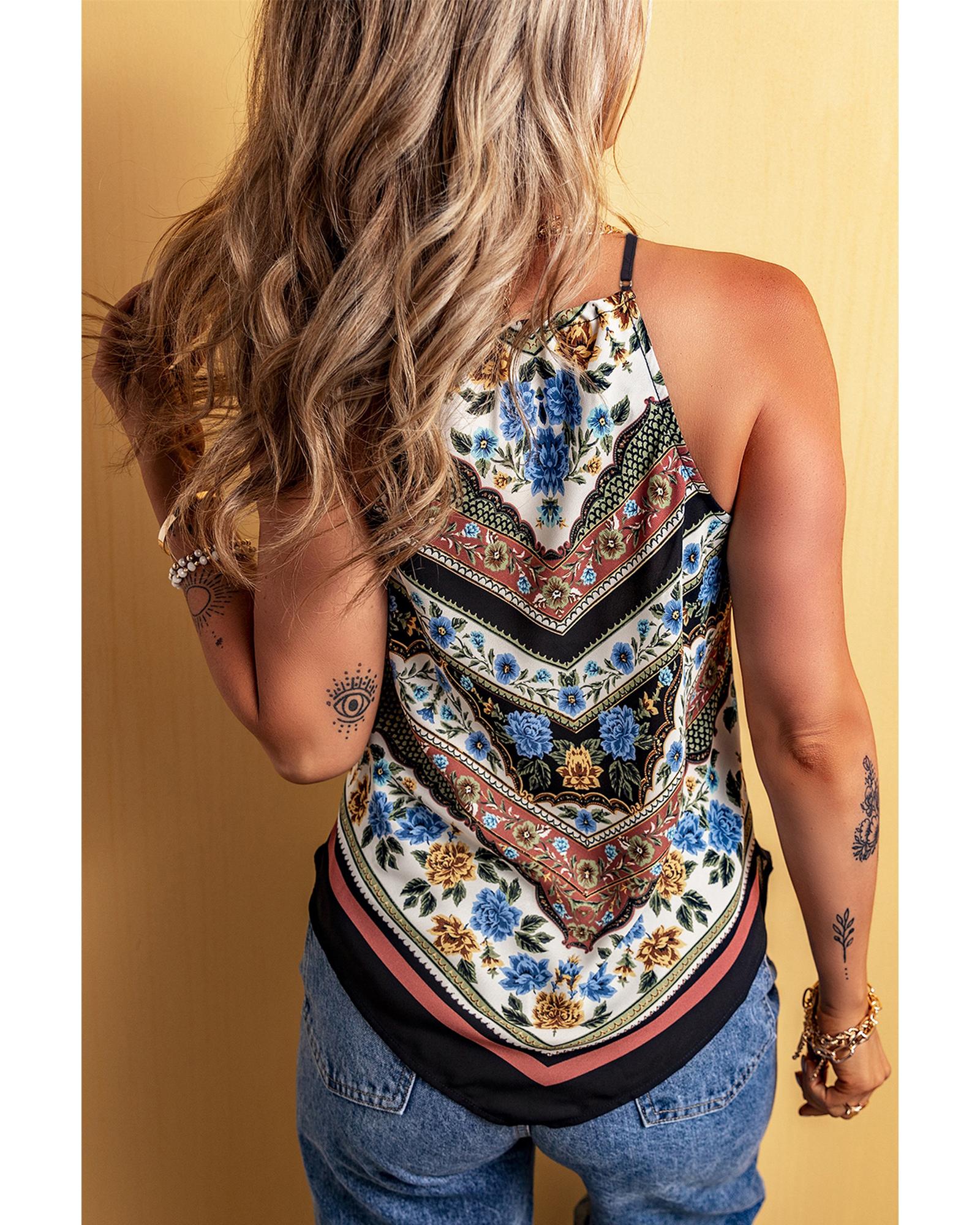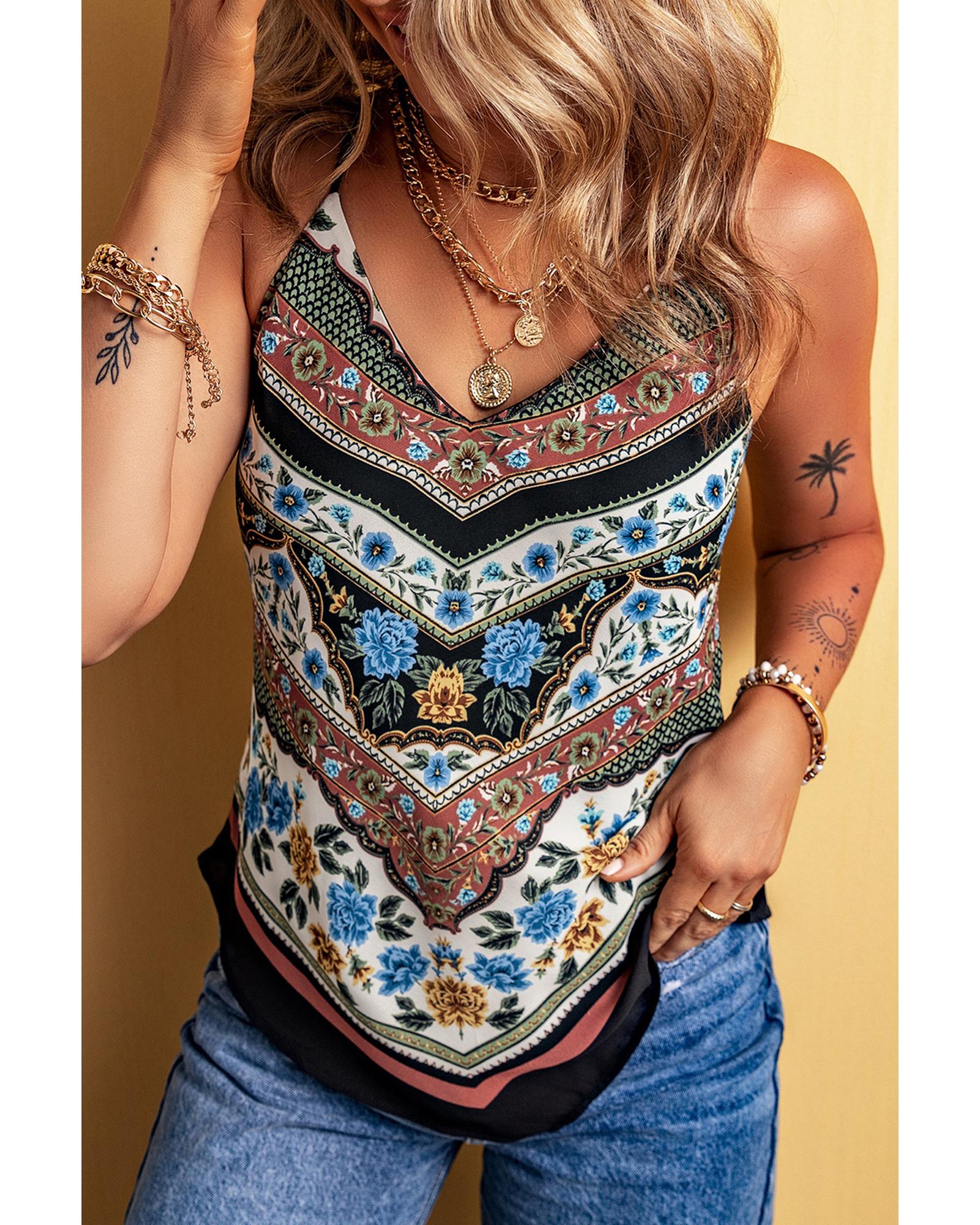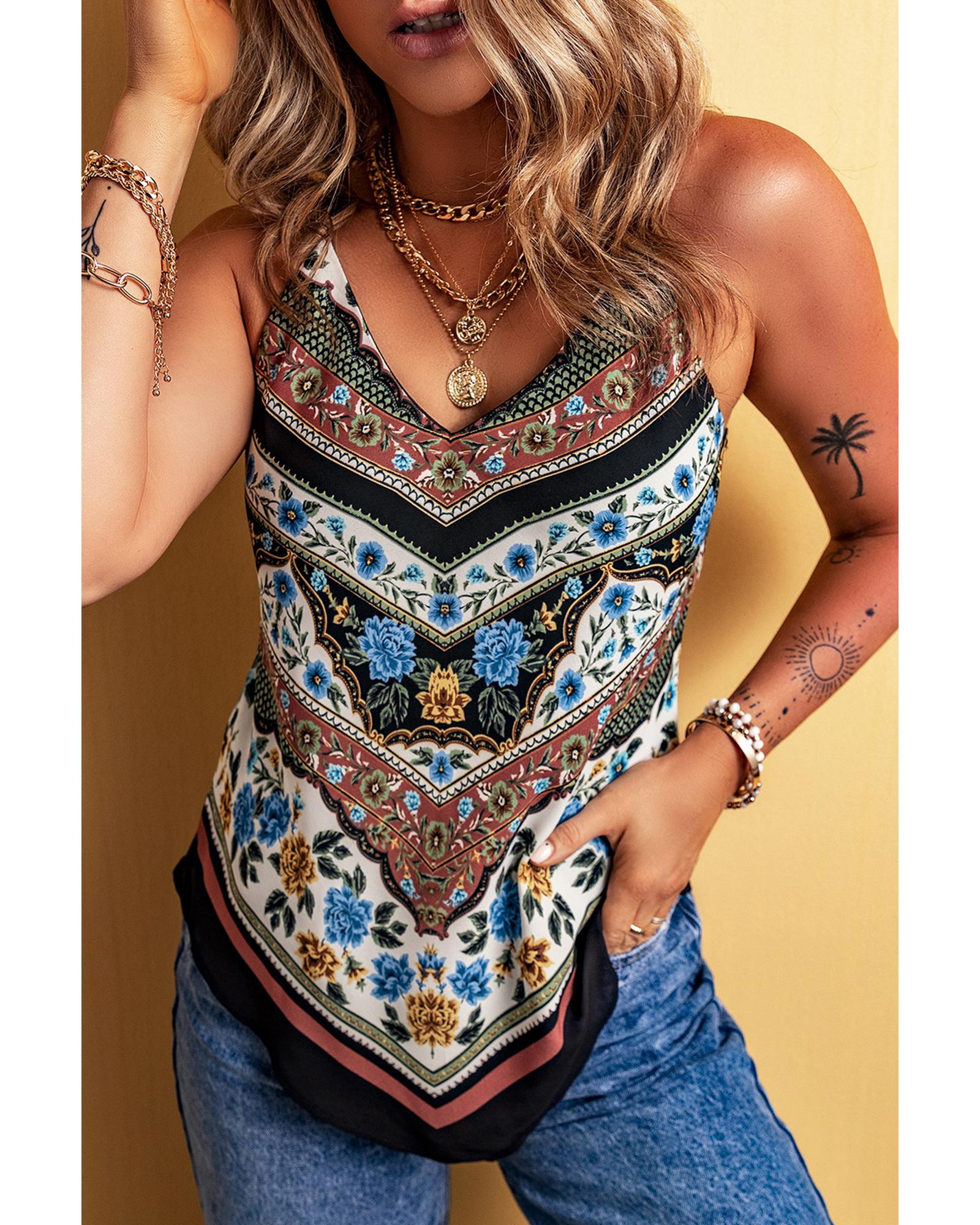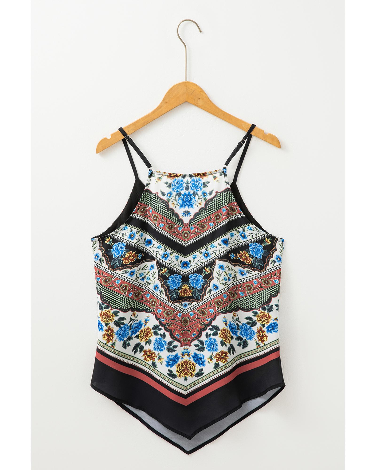 Red Mixed Floral Chevron Pattern Dip Hem Spaghetti Straps Tank – XL
