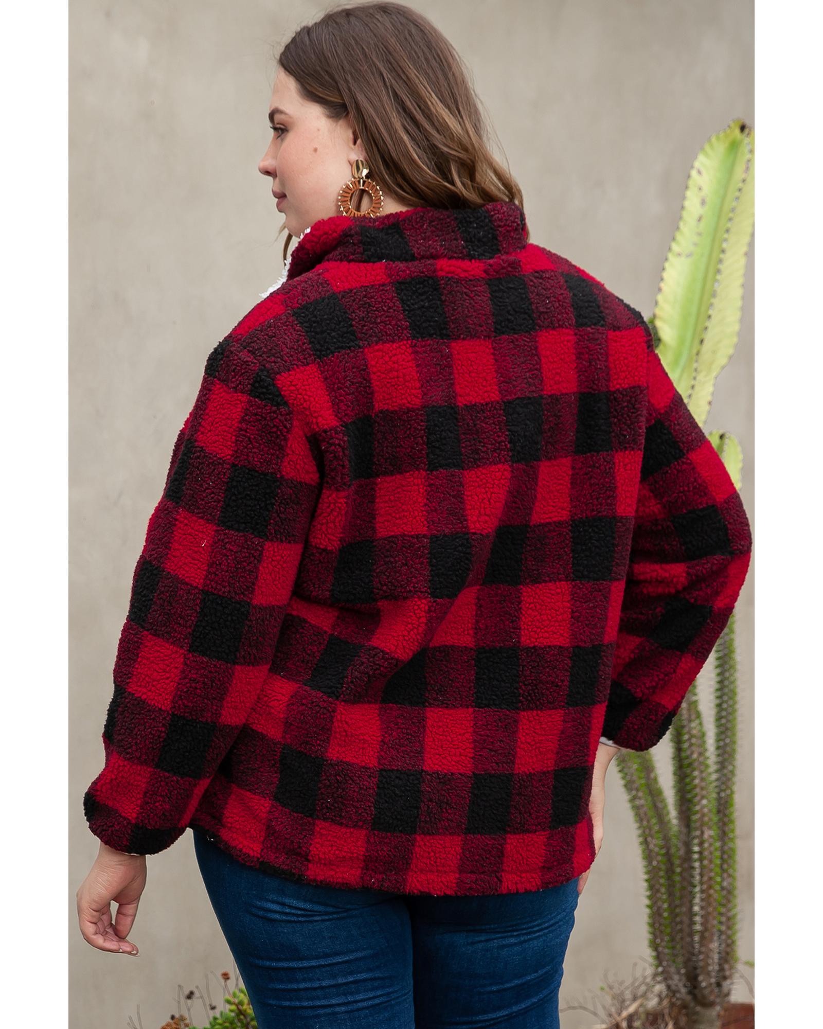 Red Plus Size Buffalo Plaid Sherpa Henley Sweatshirt – 2X