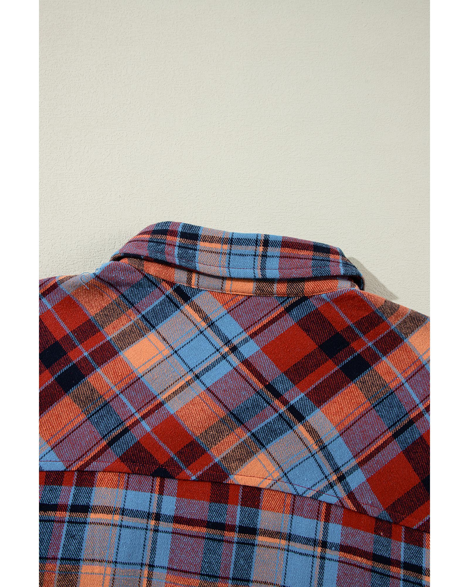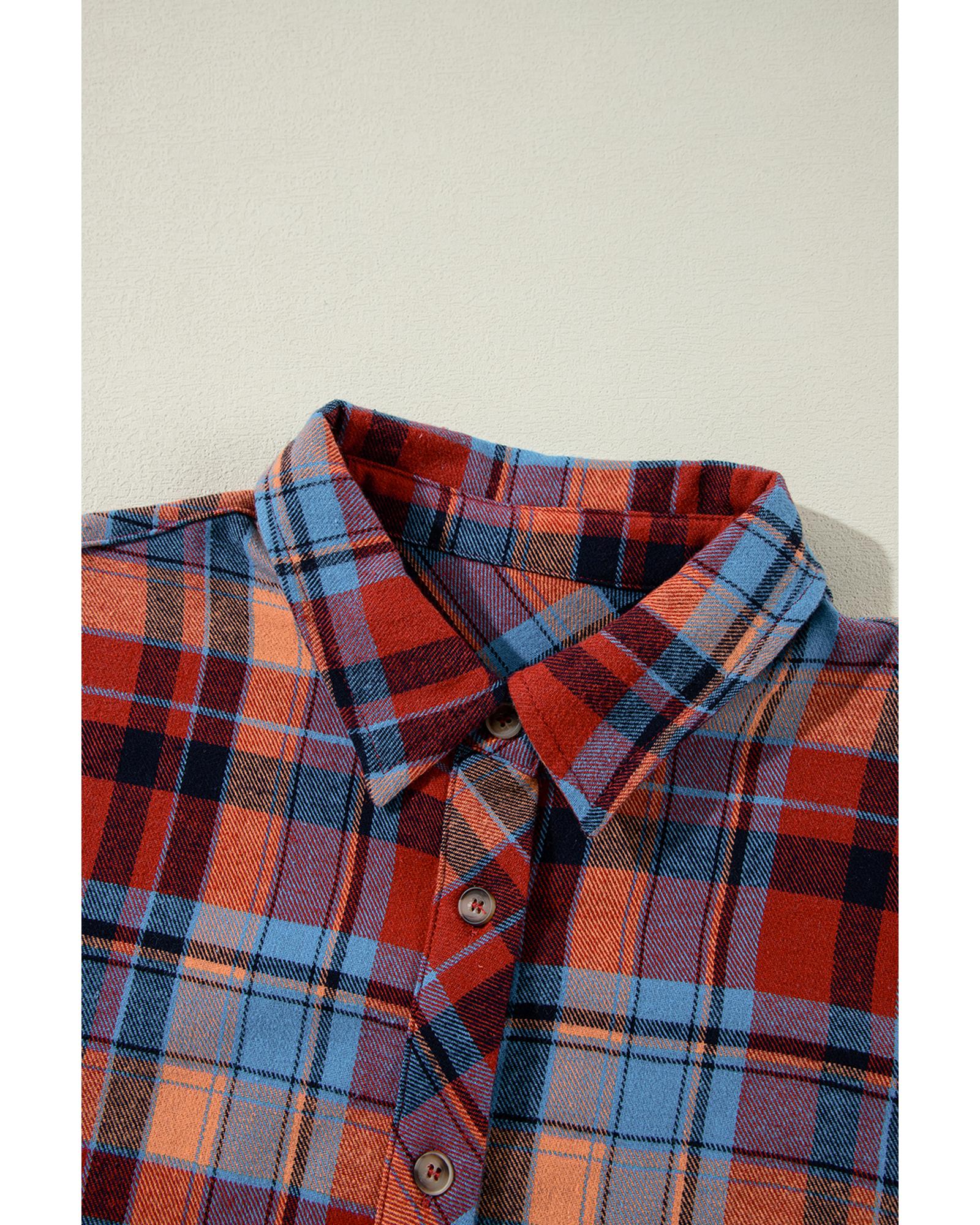 - Classic Red Plus Size Plaid Print Buttoned Shirt