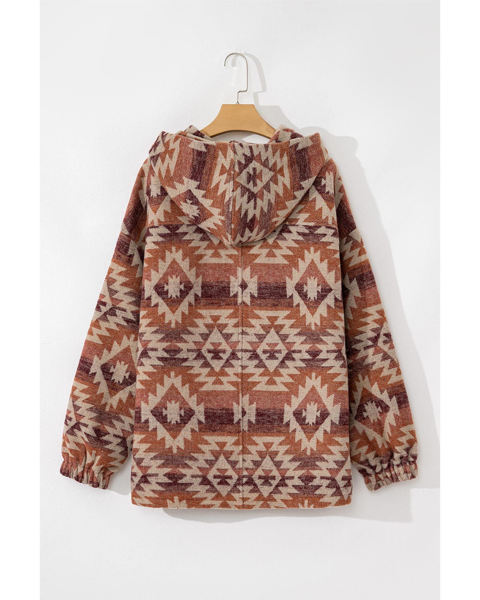 Red Plus Size Western Fashion Aztec Patterned Half Zip High Neck Hoodie – 2X