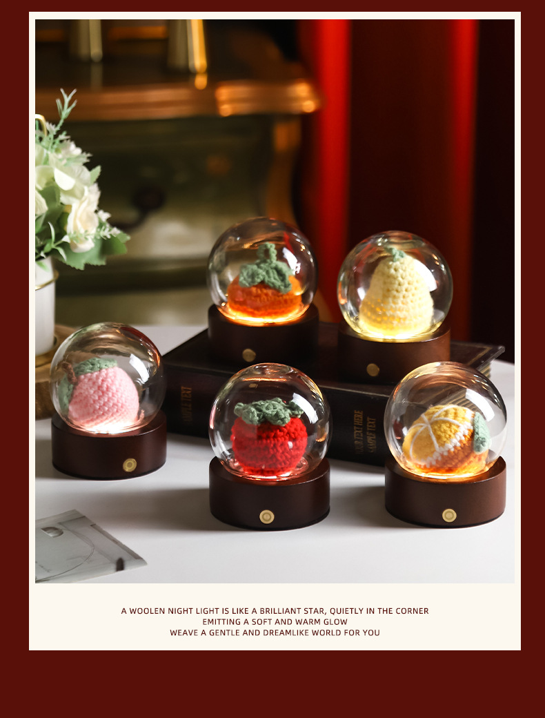 - 1 x Crochet Flower LED Night Light with Glass Dome & Wood Base