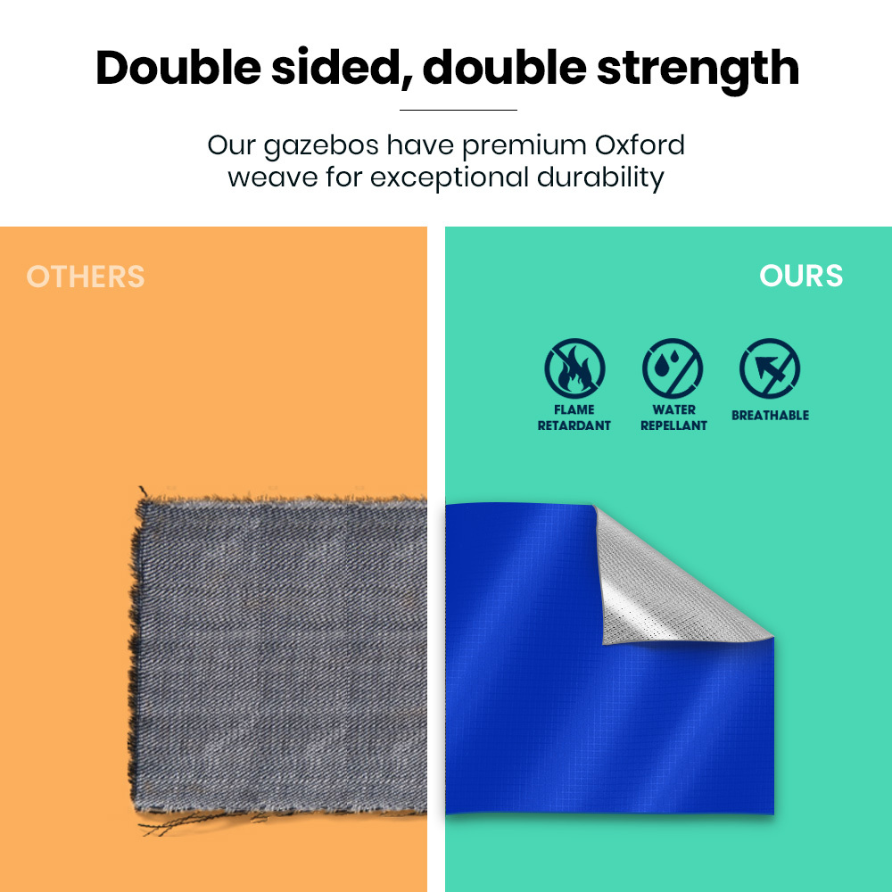 The Red Track 3x3m Gazebo stands out with the smallest folded size on the market—just 93cm long! This ultra-compact 12kg design makes it incredibly easy for one person to carry, transport, and store, offering unmatched convenience compared to bulkier alternatives. Whether you’re short on space or always on the move, this gazebo’s design ensures portability without compromise.