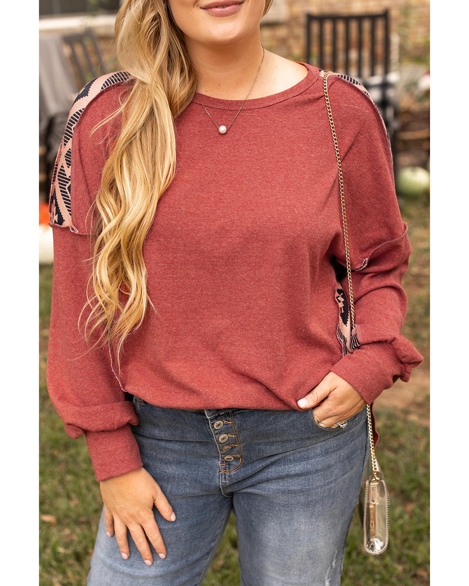Redwood Burl Aztec Patchwork Drop Shoulder Plus Size High Low Sweatshirt – 2X