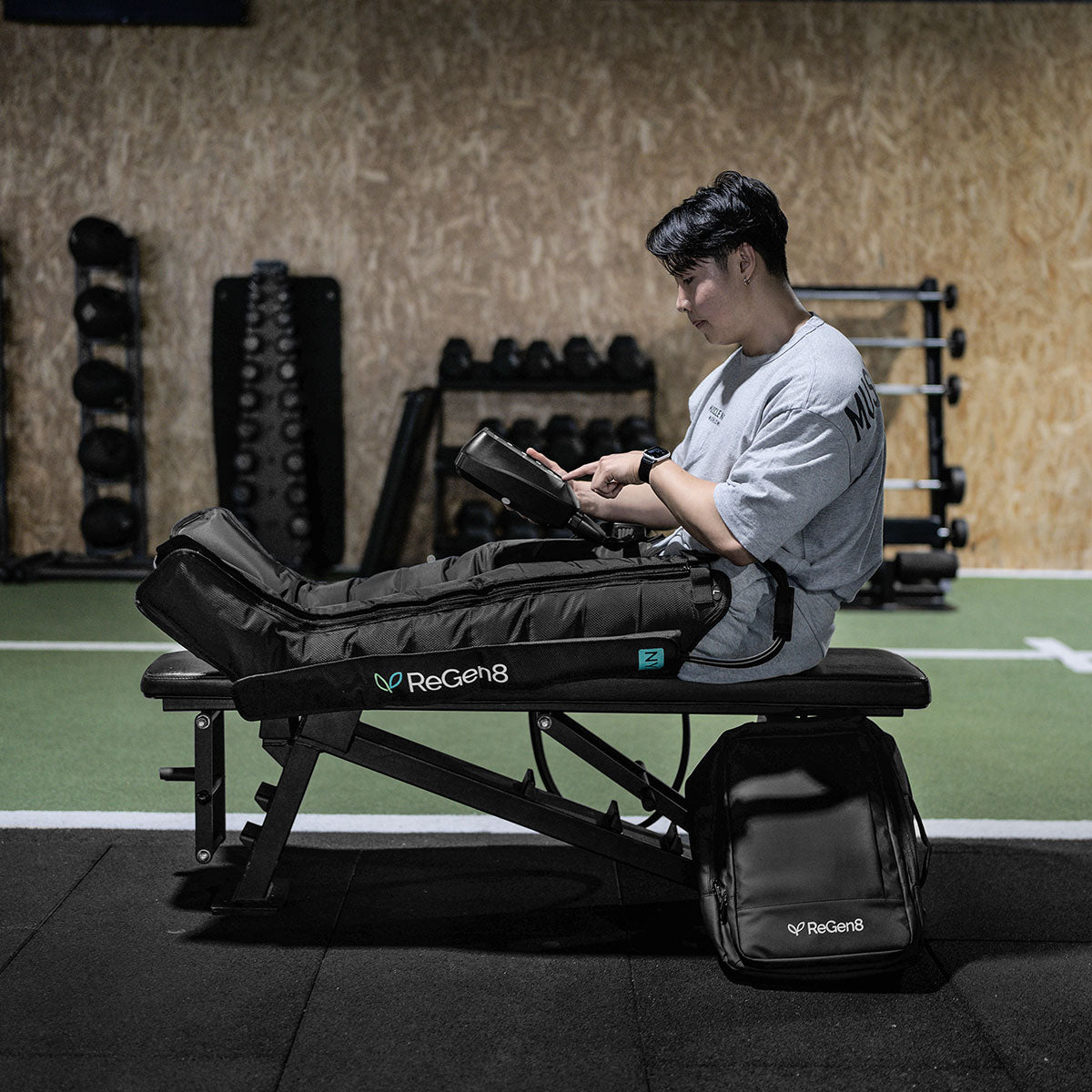 Experience true post-workout rejuvenation with the Regen8 Nyx 8-Chamber Compression Recovery Boots. The 8-chamber sequential compression system delivers a targeted massage that promotes circulation and reduces muscle soreness, allowing you to warm up faster and recover more effectively. By enhancing blood flow and lymphatic drainage, these boots aid in reducing swelling, removing metabolic waste products and preventing injuries. The Nyx Recovery Boots have been designed for enhanced comfort and ergonomic support, ensuring a relaxing recovery session every time. Plus, with a long-lasting battery, you can take all the time you need without interruption. Elevate your recovery routine with the Nyx Compression Recovery Boots and feel the difference in your performance and well-being.