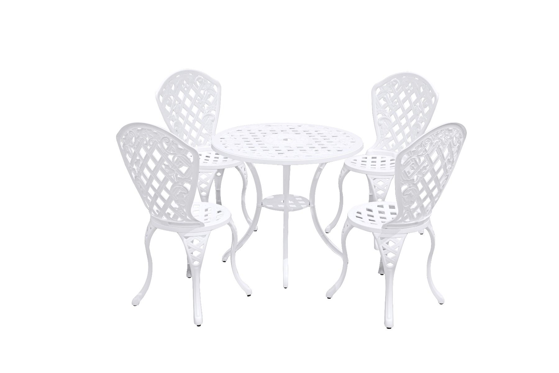 Enhance your patio, garden, or balcony with this stylish Aluminum 5-piece set. Featuring four comfortable chairs and a sleek table, this set combines contemporary design with robust construction for a perfect outdoor solution.