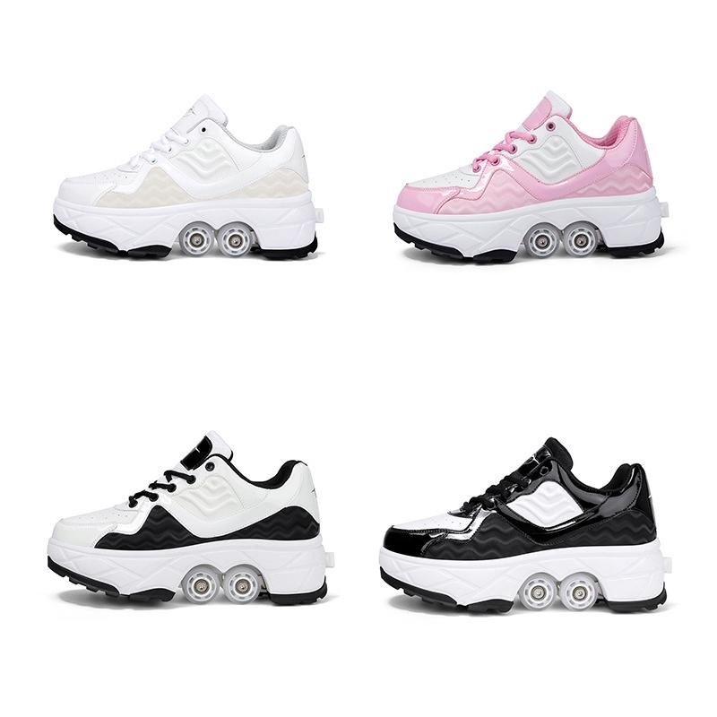 Retractable Dual-purpose Roller Skates – Size 33 Deformable Four-wheel – Df09 Black – 34