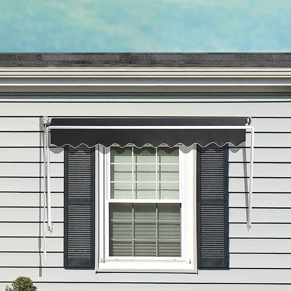 Retractable Fixed Pivot Arm Window Awning Patio Garden Blinds 2.4m x 2.1m Grey