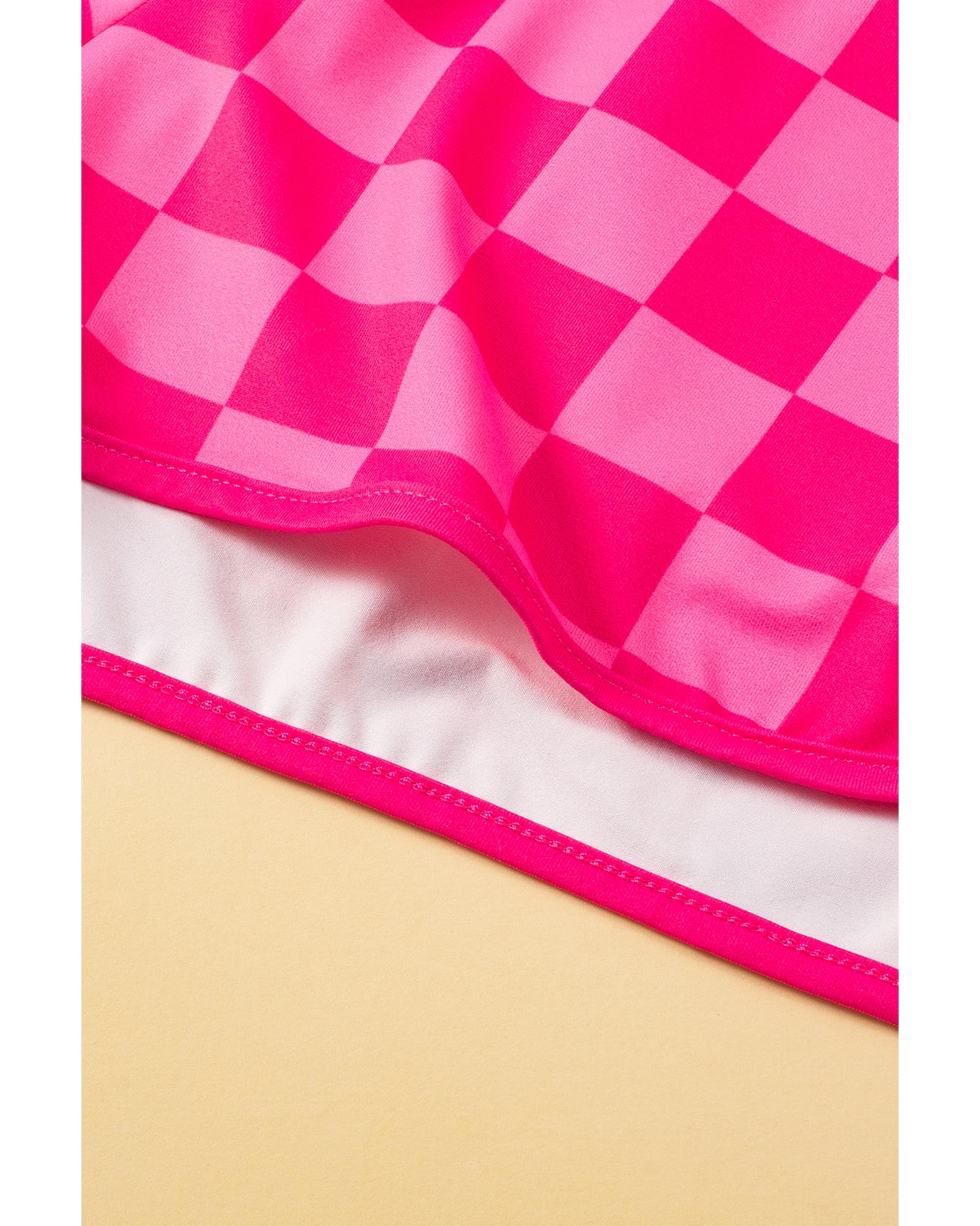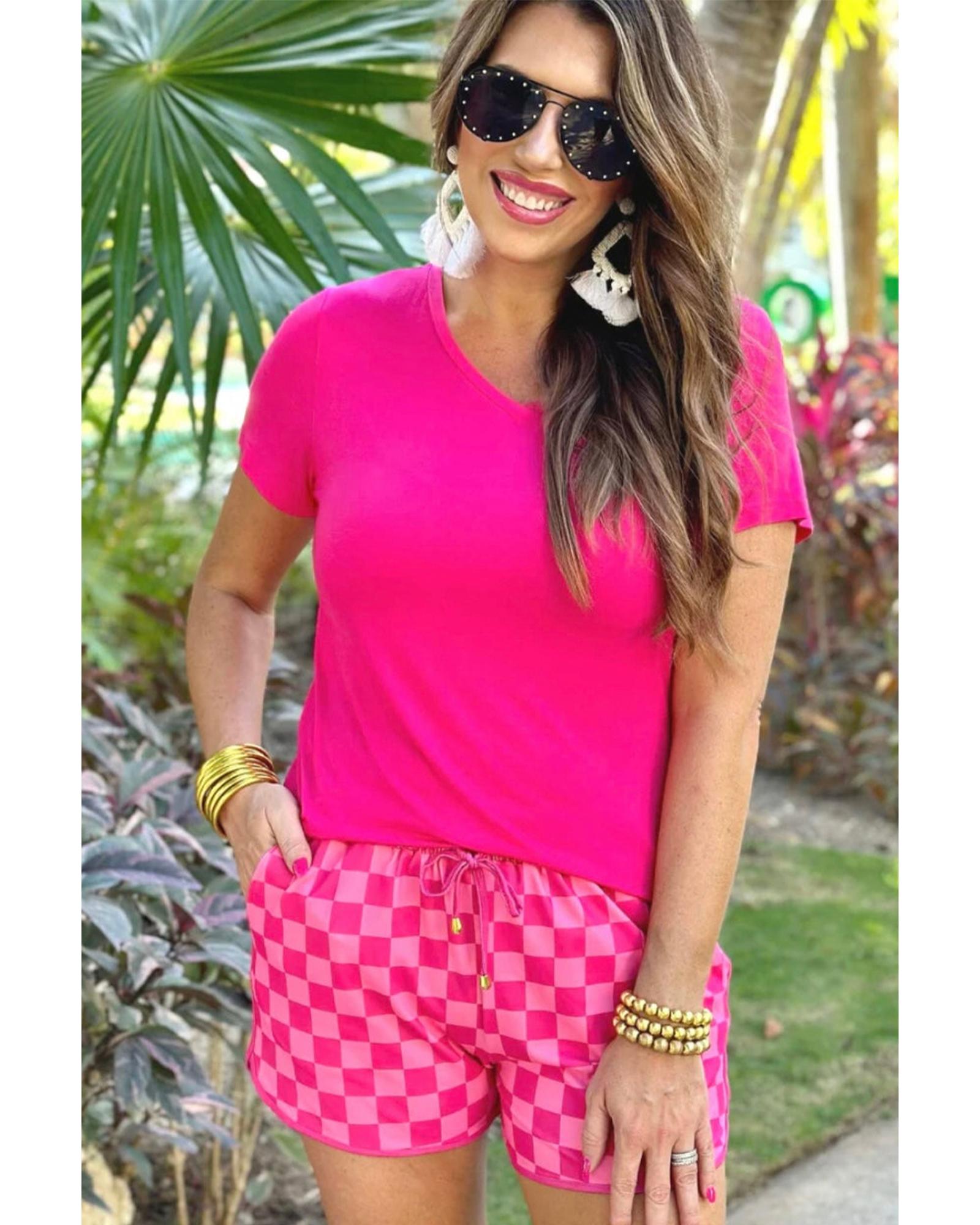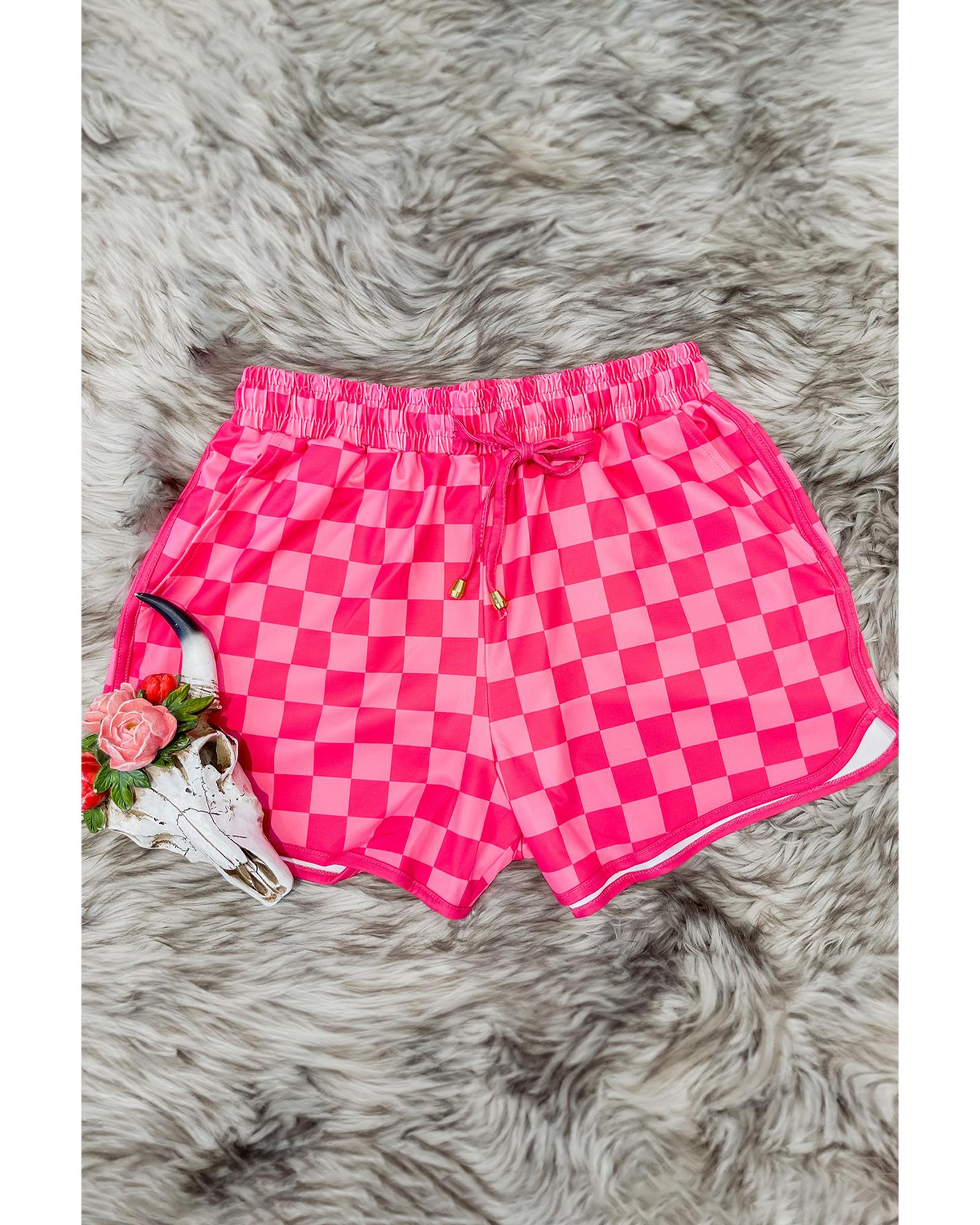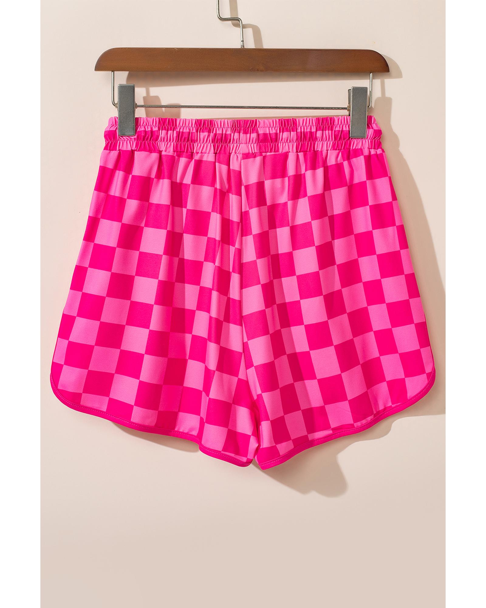 Rose Checkered Drawstring Elastic Waist Casual Shorts – XL