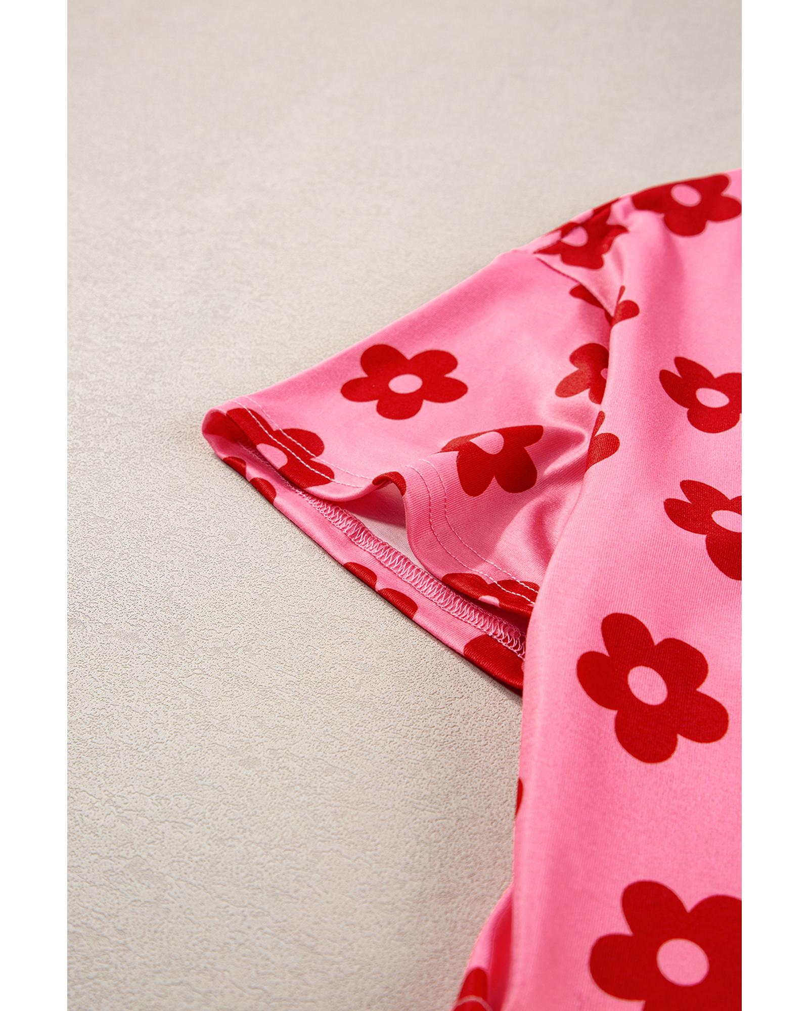 Rose Floral Print Crop Tee and Shorts Lounge Set – S