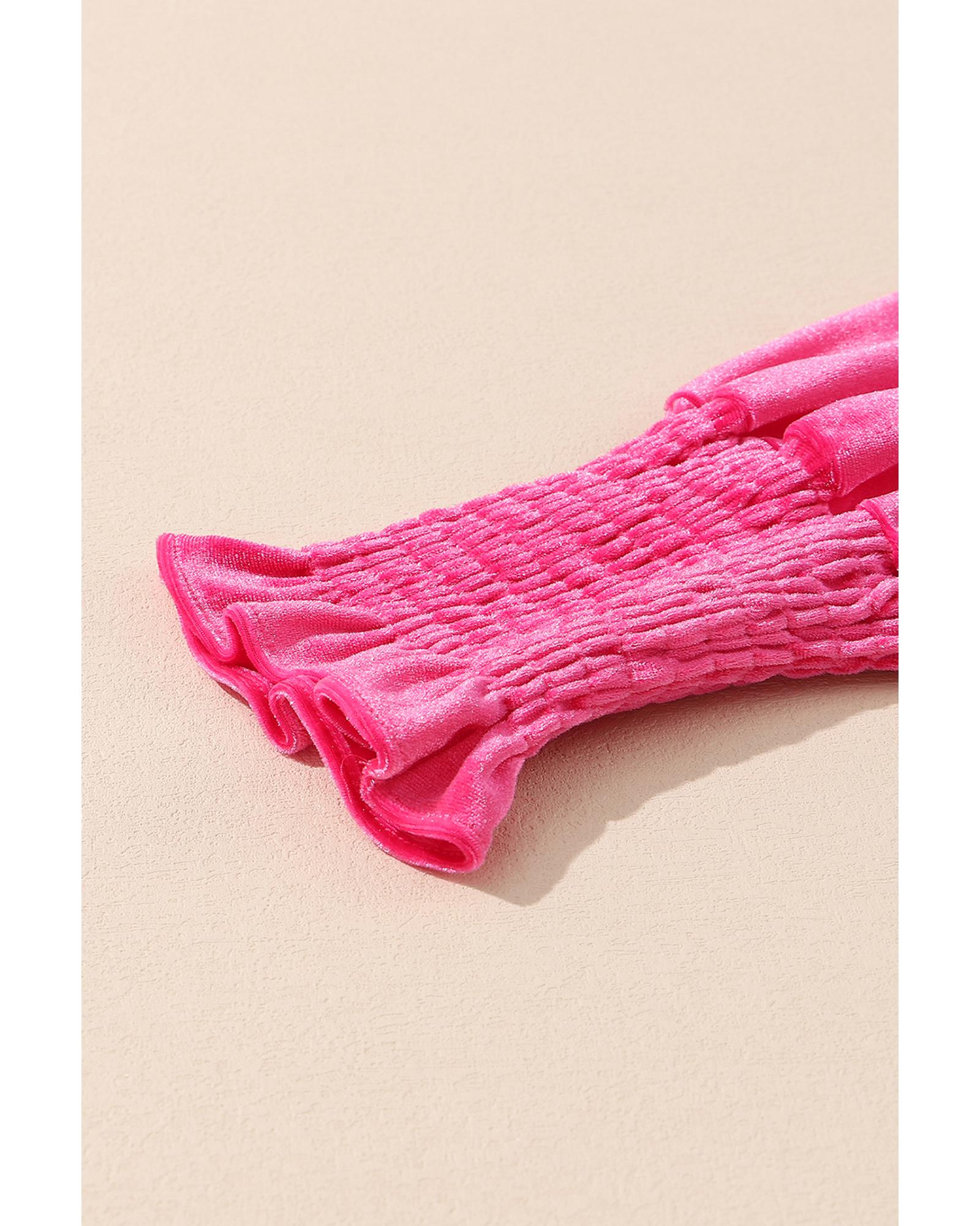 Rose Frilled Neck Smocked Bodice Velvet Dress – M