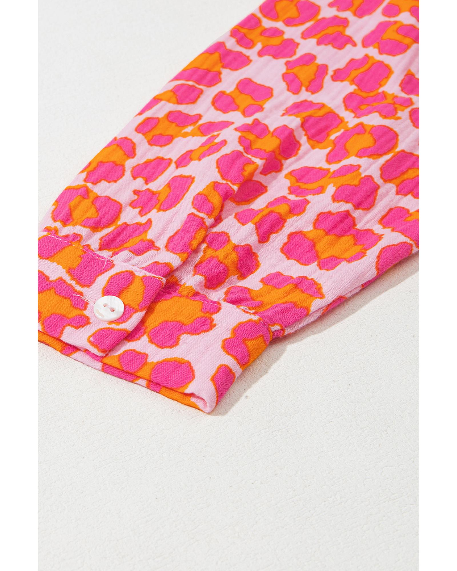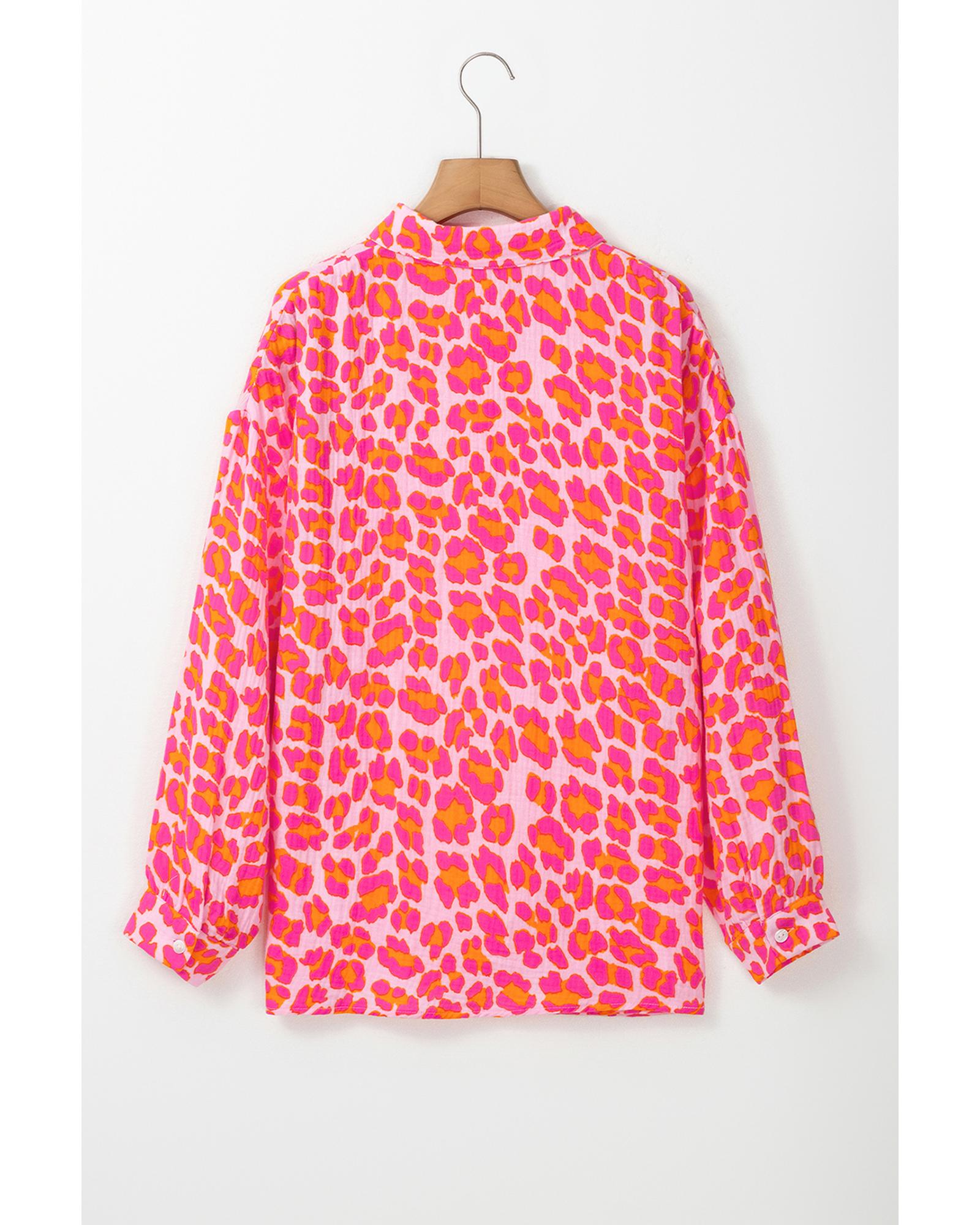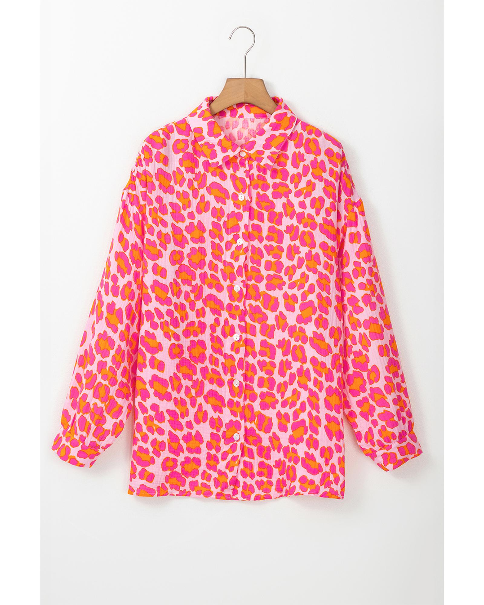Rose Leopard Printed Button Up Loose Shirt – L