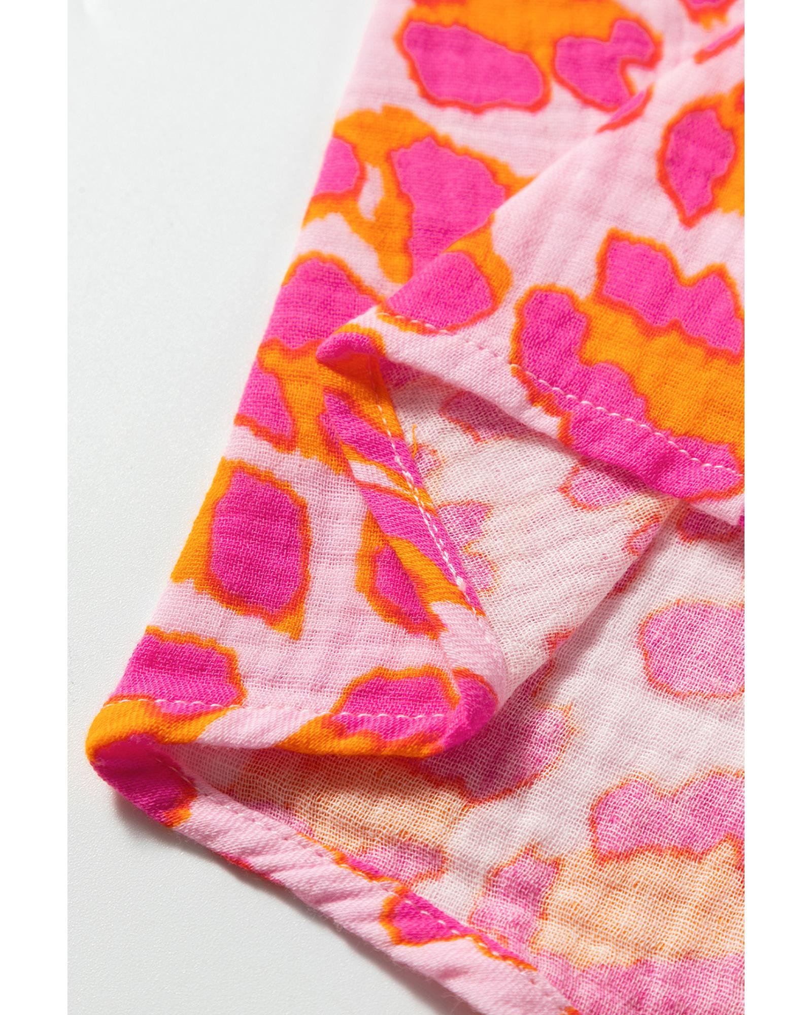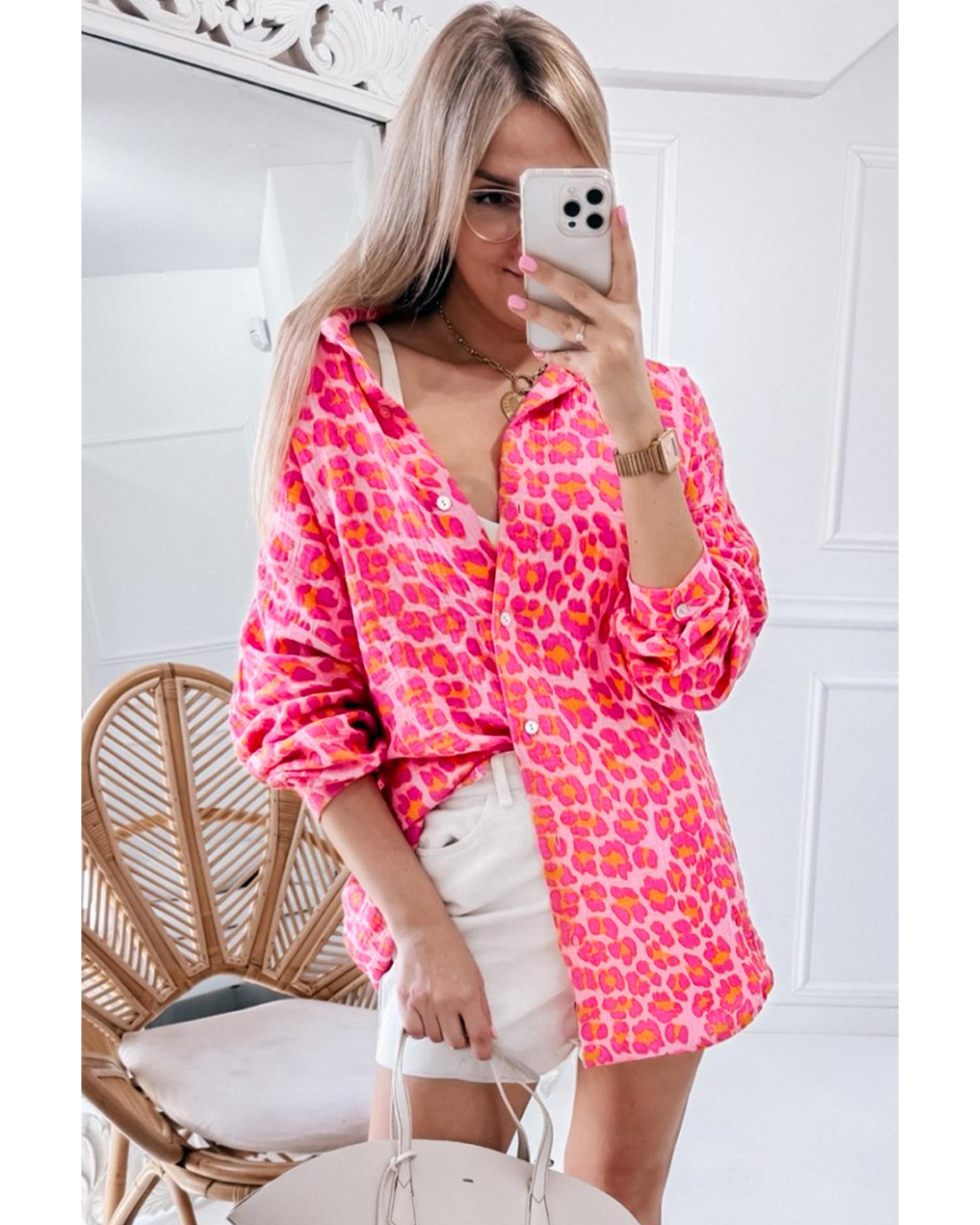 Rose Leopard Printed Button Up Loose Shirt - XL