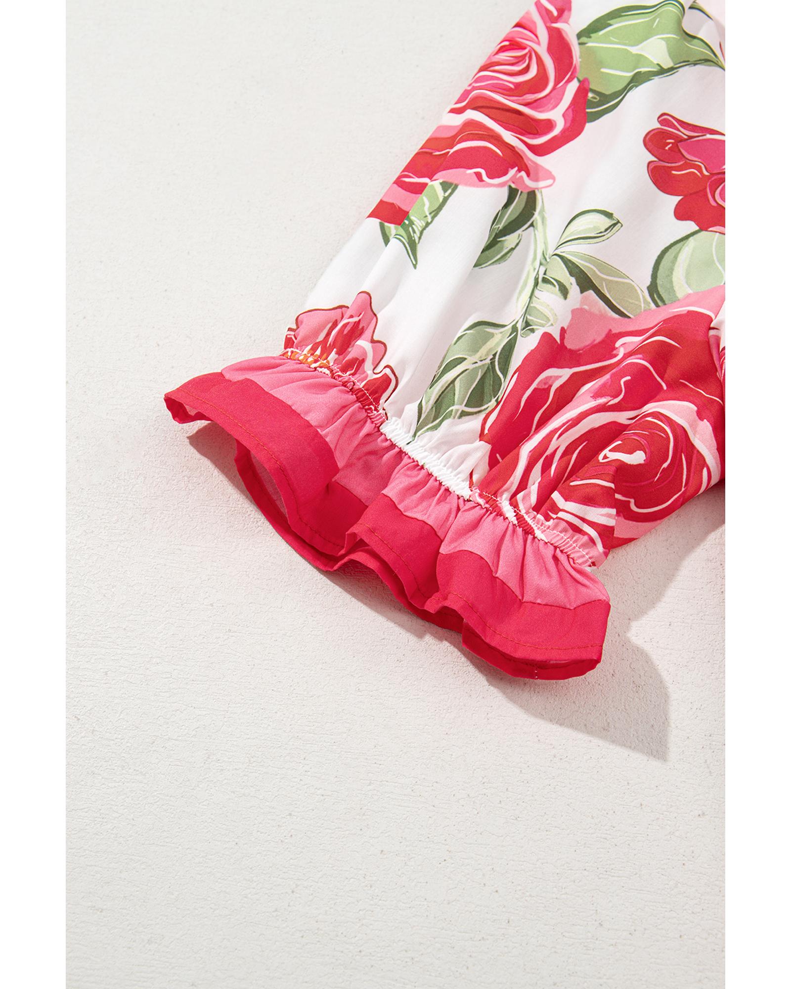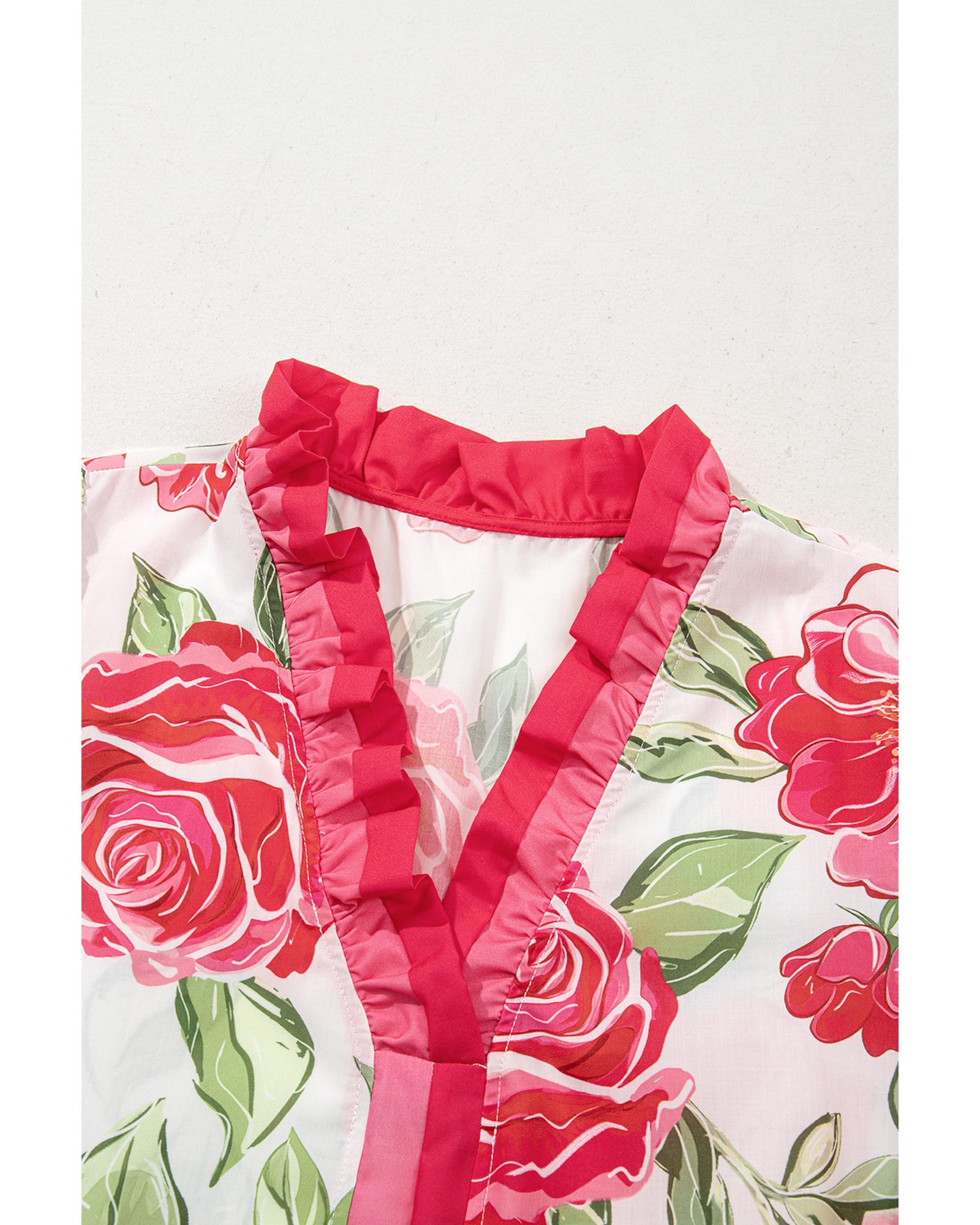 Rose Plus Size Floral Print Frilled Stripes Detail Short Sleeve Blouse – 2X
