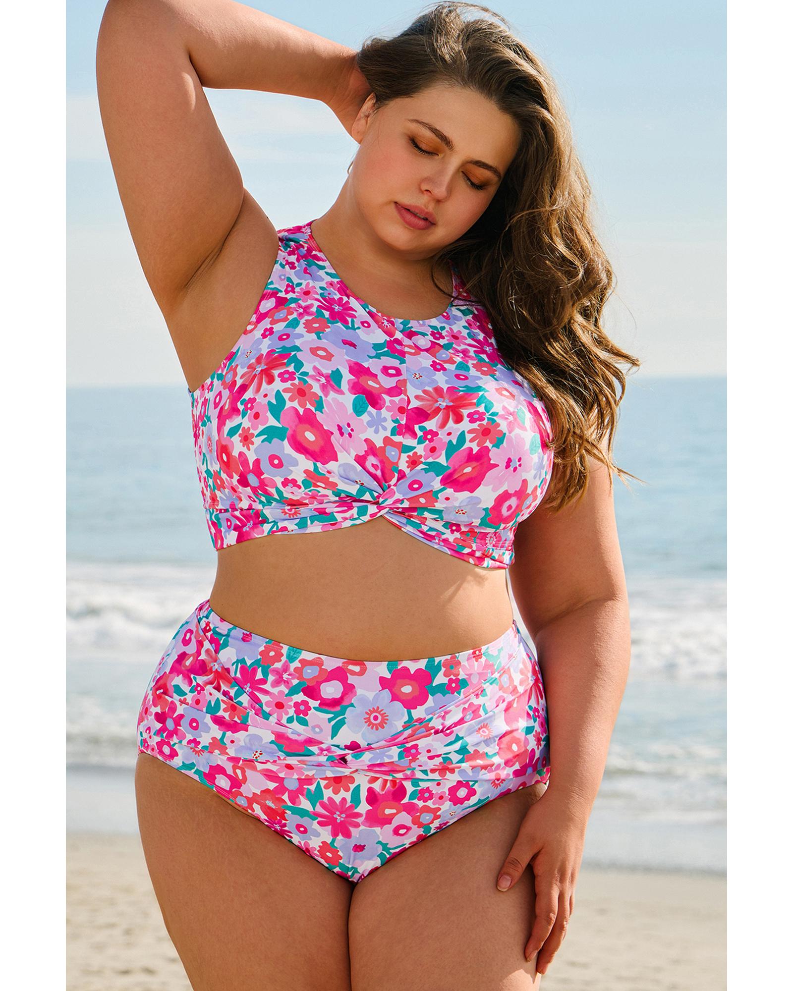 - Vibrant floral print bikini set for plus