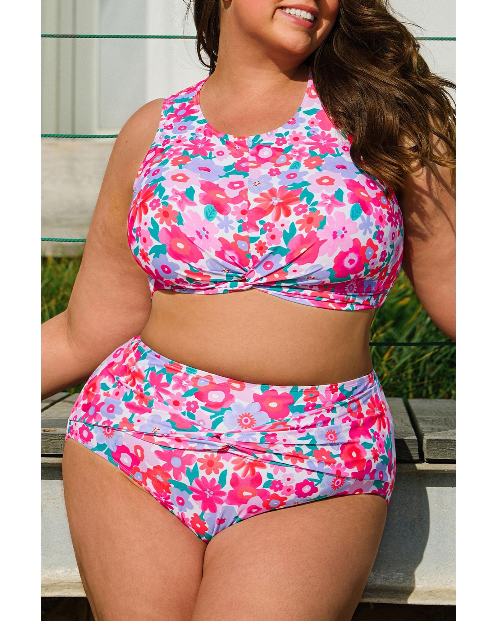 Rose Plus Size Floral Print Twisted High Waist Bikini Set – 3X
