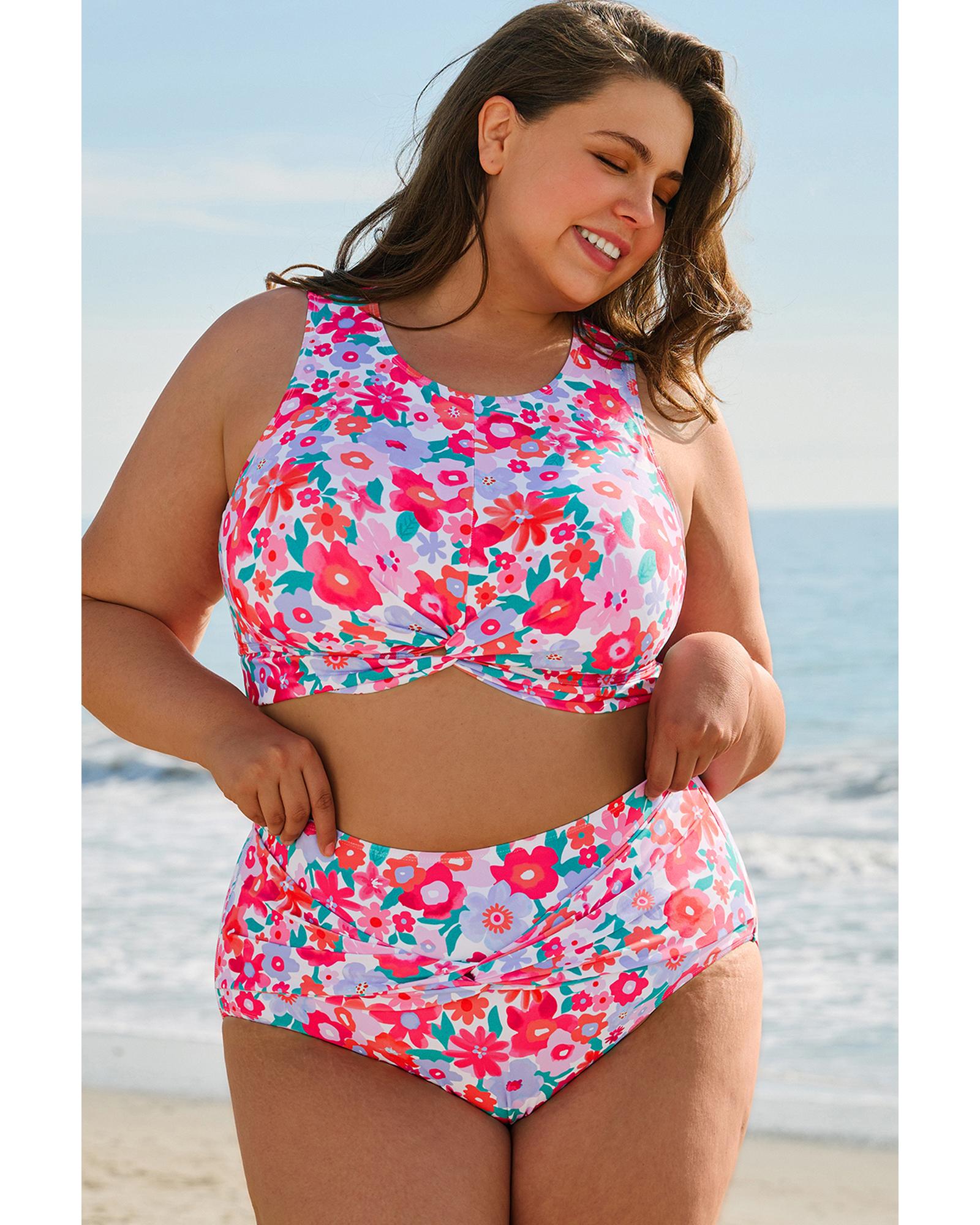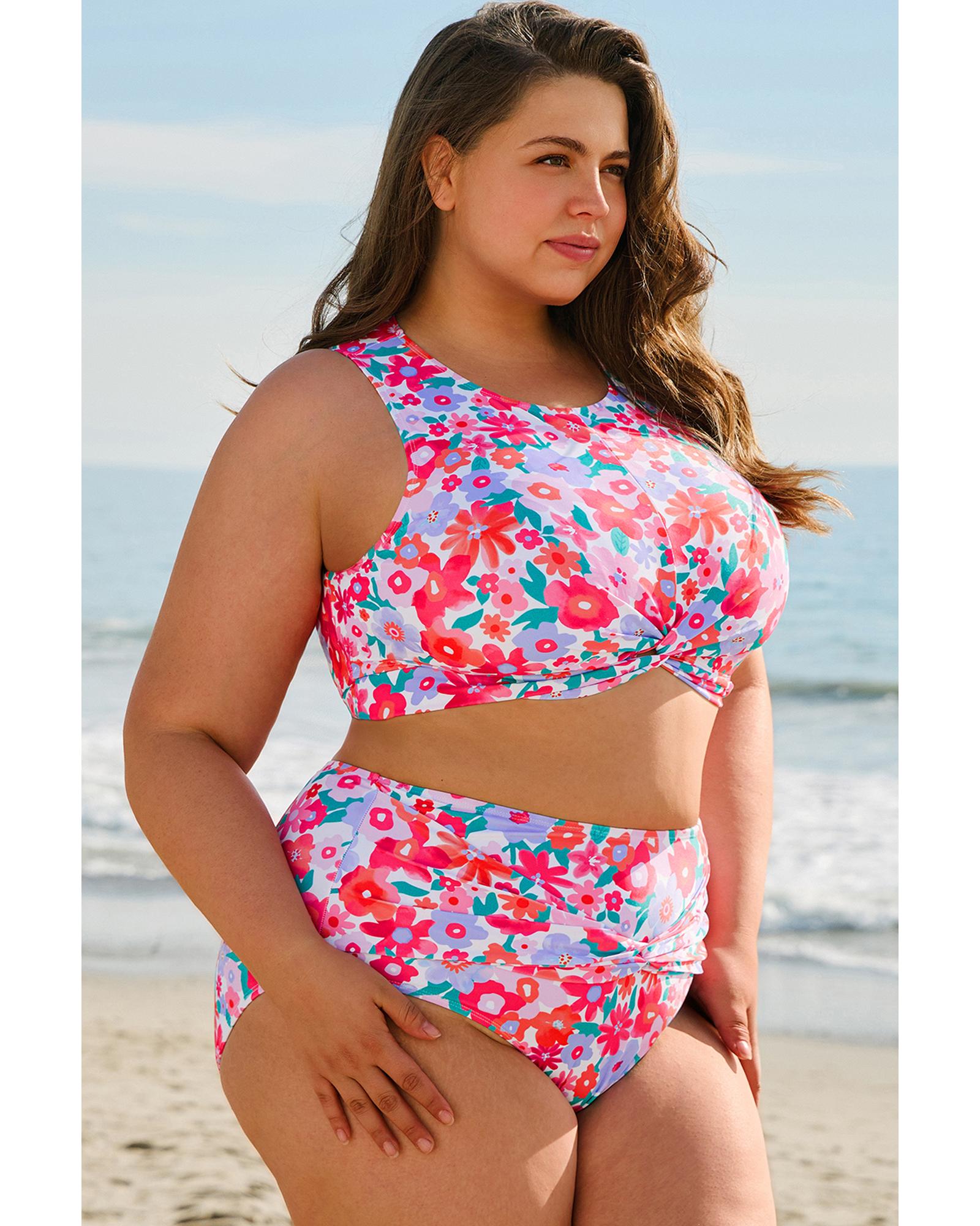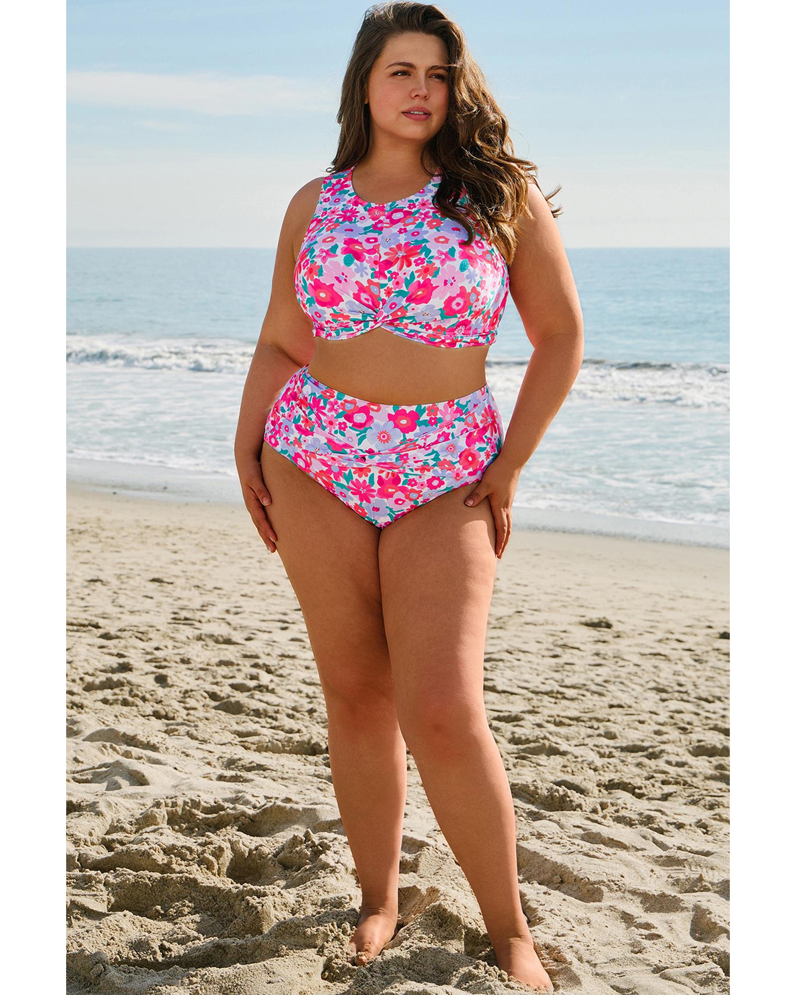 - Vibrant floral print bikini set for plus