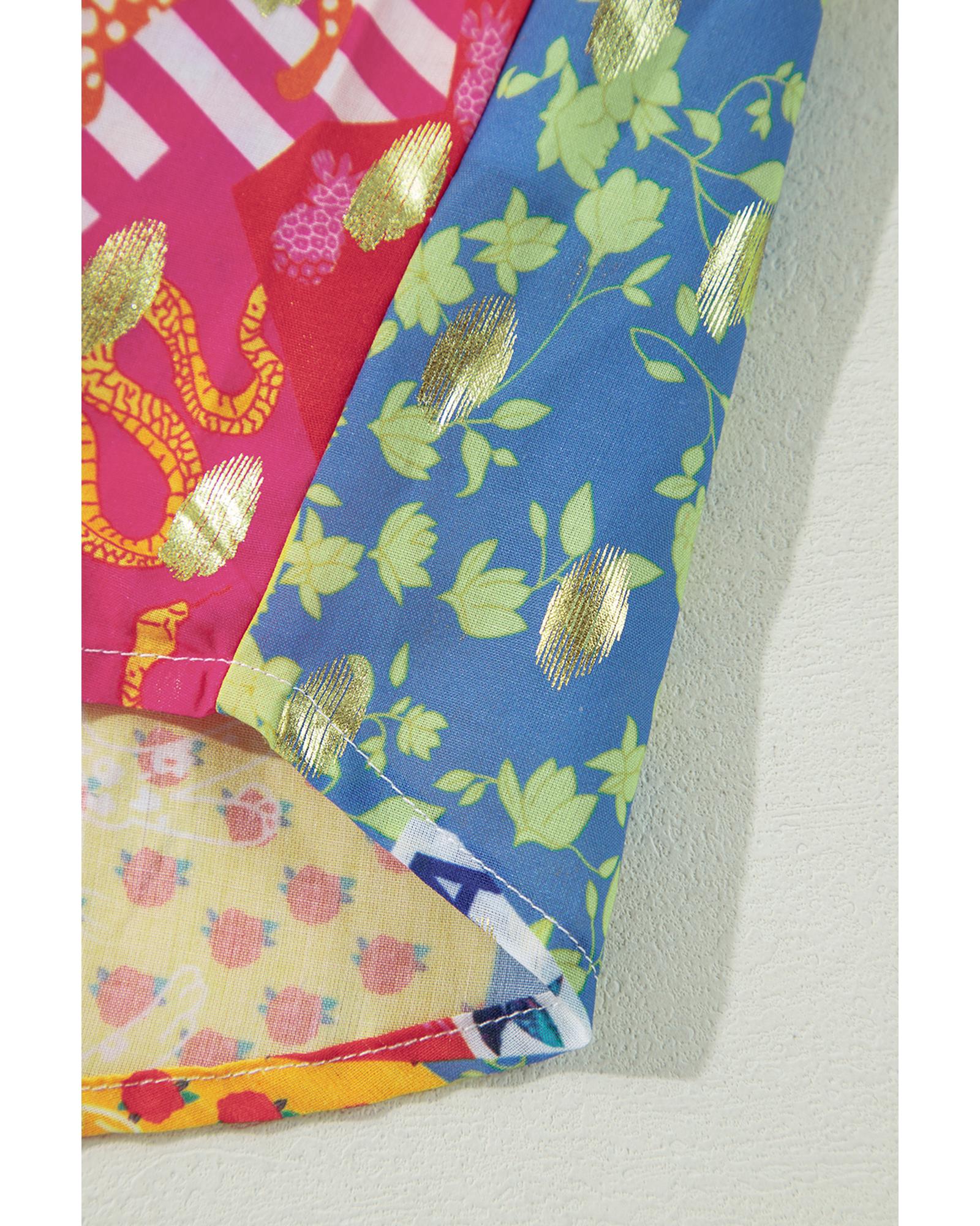 Rose Red Colorblock Abstract Print Button up Loose Shirt – M