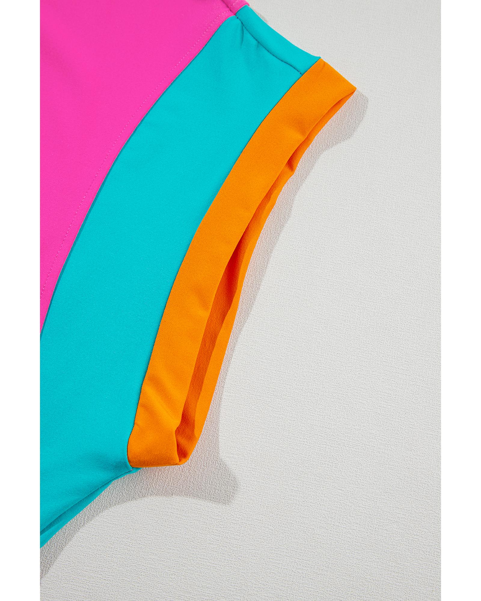 - Cap sleeve top and shorts with colorblock pattern