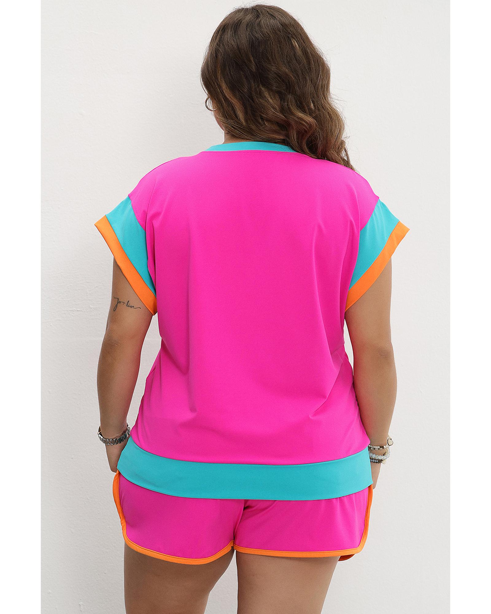 Rose Red Colorblock Patchwork Cap Sleeve Top Plus Size Shorts Set – 1X