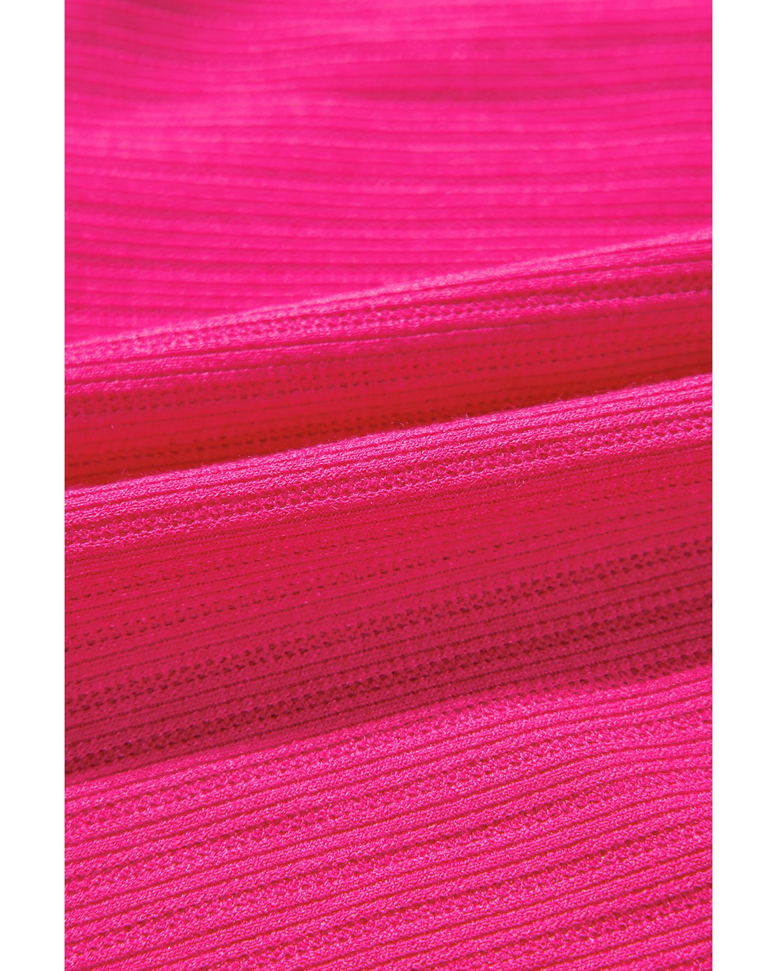 Rose Red Colorful Crochet V Neck Textured Tiered Ruffled Long Sleeve Mini Dress – L