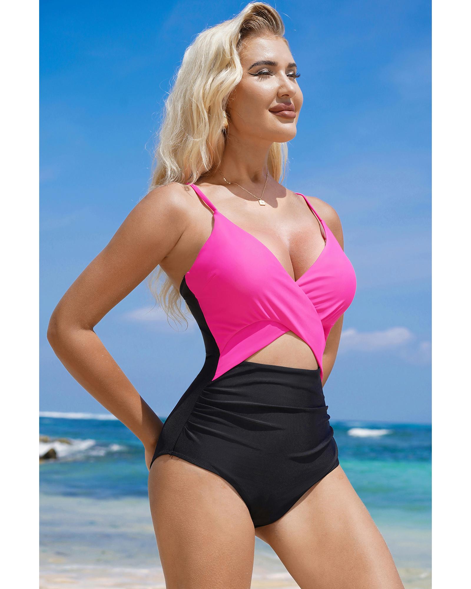 Rose Red Crossover Colorblock Cutout One Piece Swimsuit – 2XL