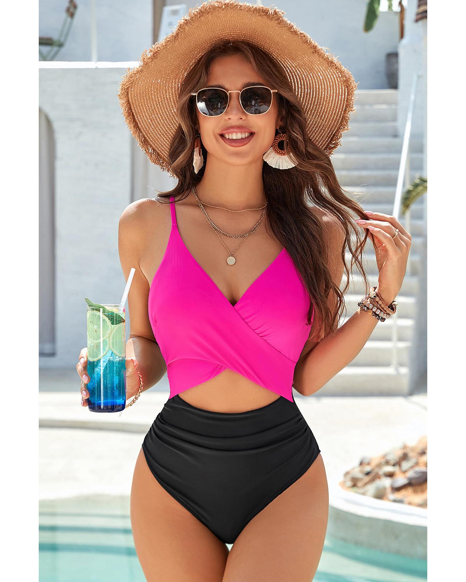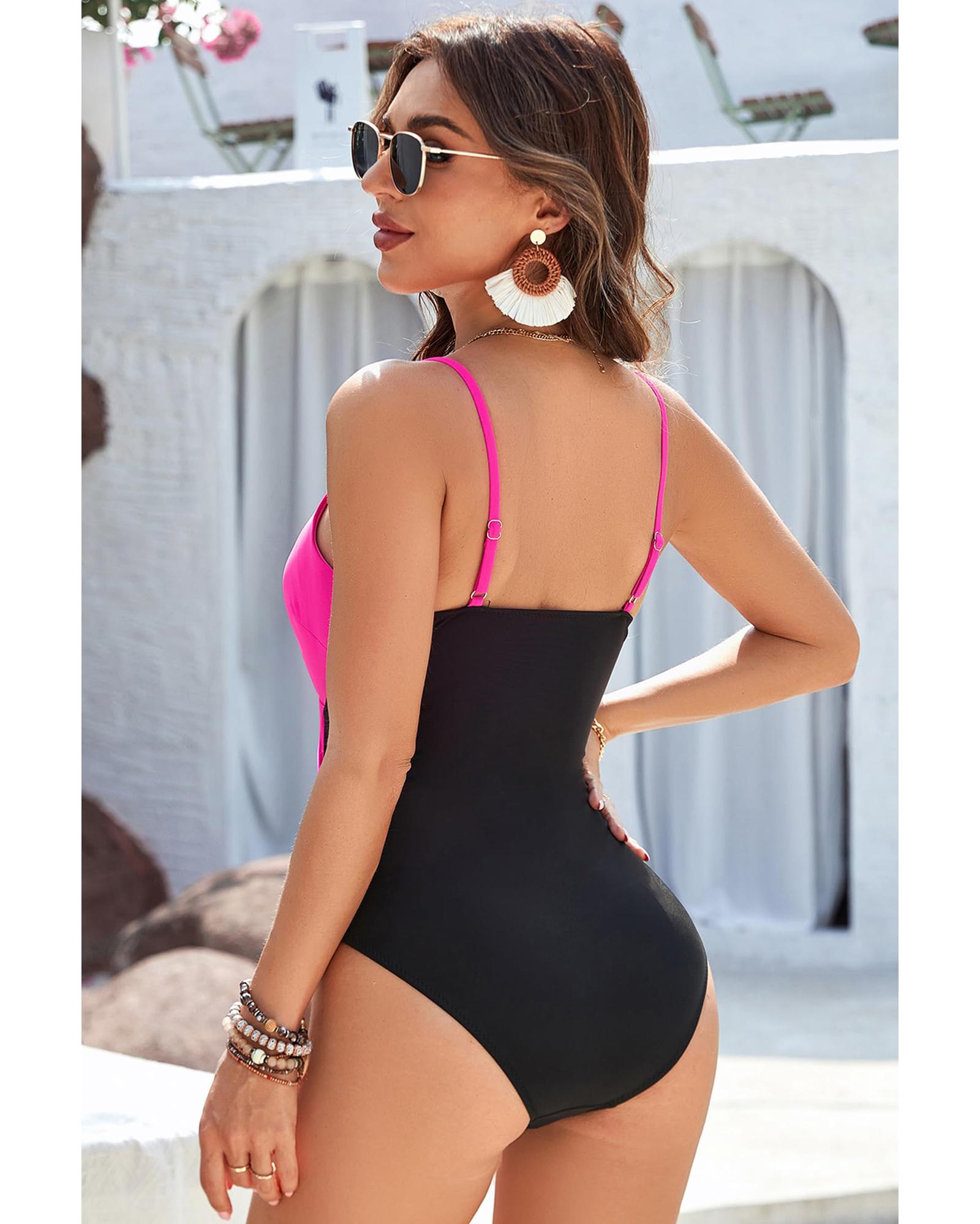 Rose Red Crossover Colorblock Cutout One Piece Swimsuit – M