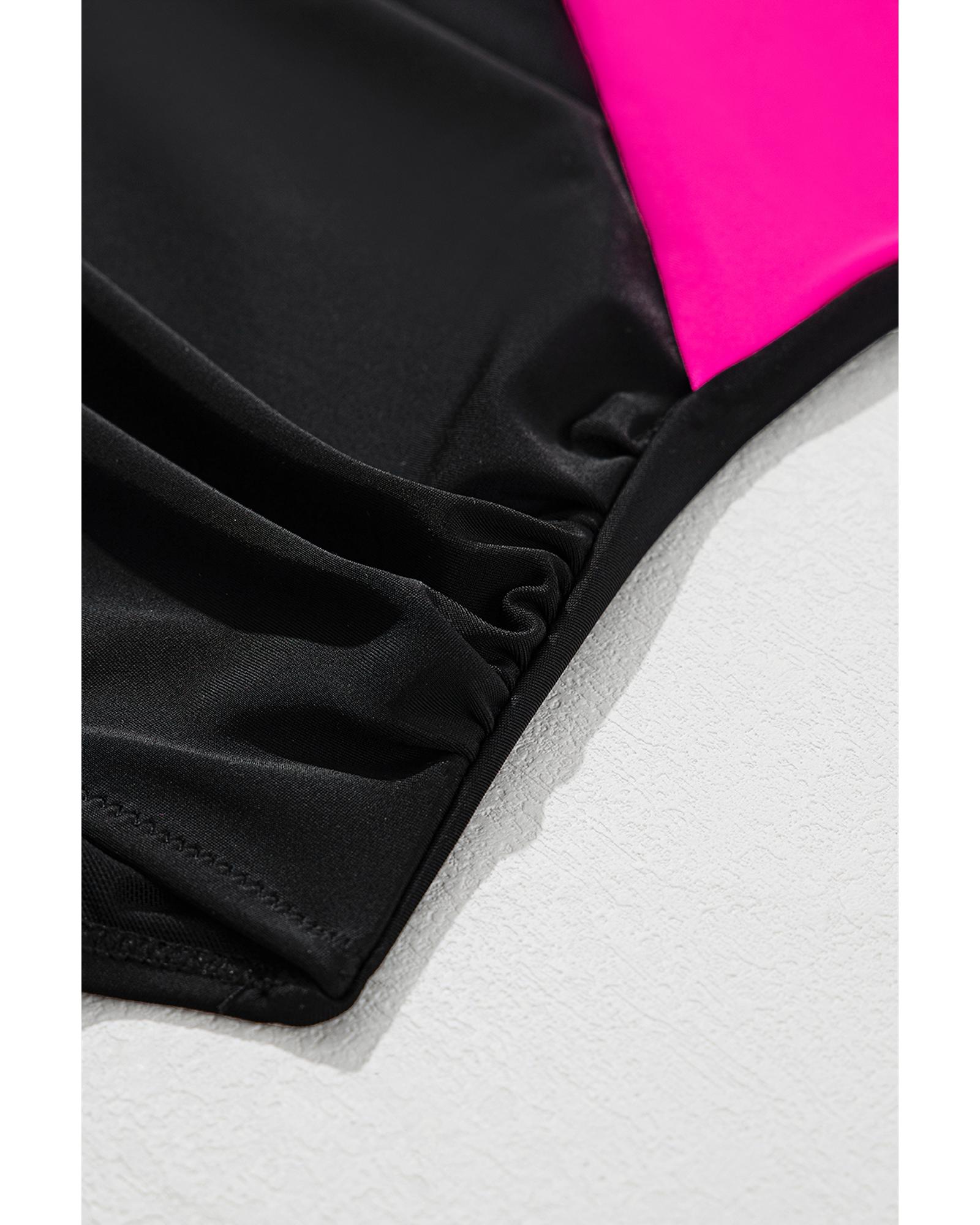 Rose Red Crossover Colorblock Cutout One Piece Swimsuit – S