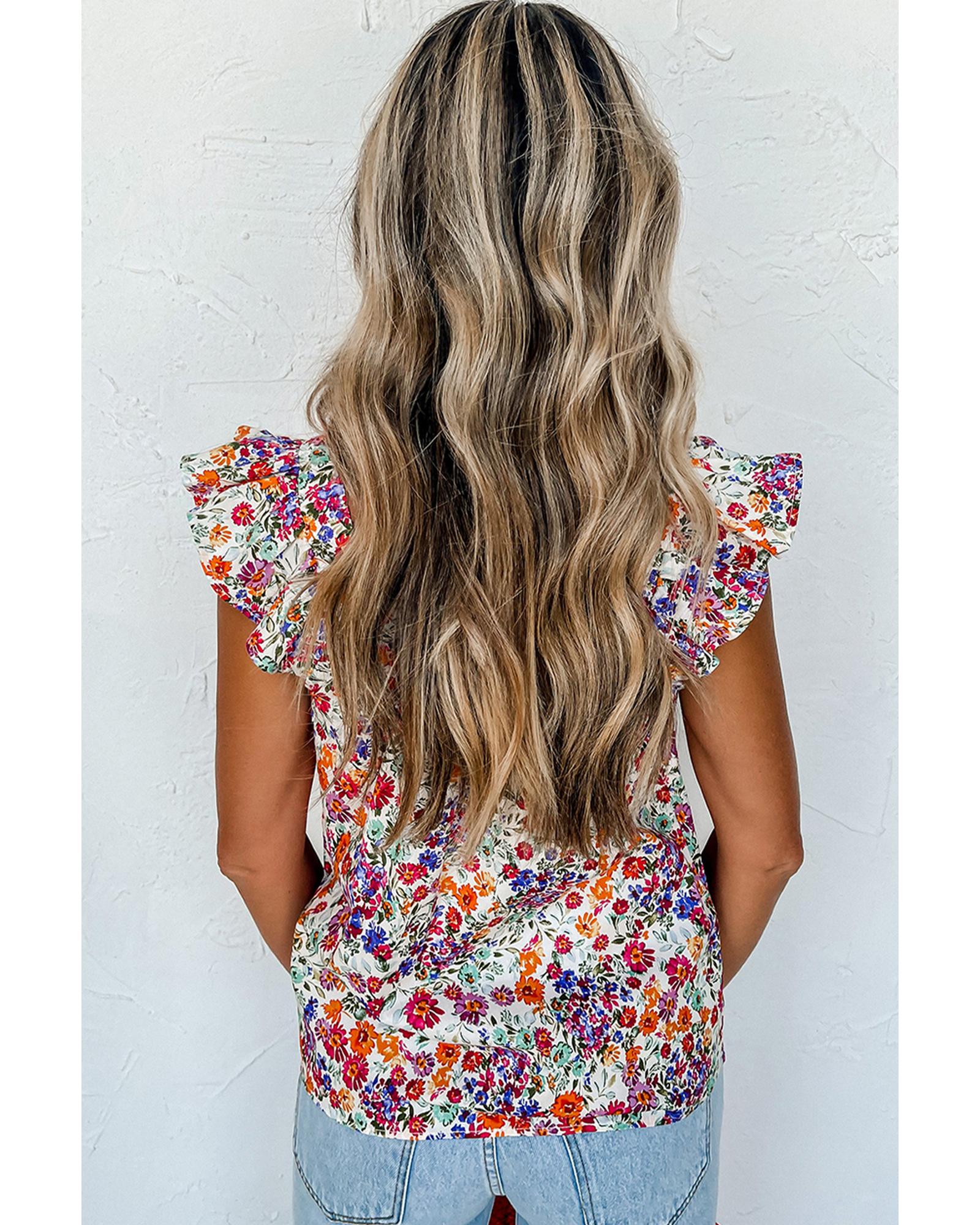 Rose Red Floral Square Neck Flutter Tank Top – S