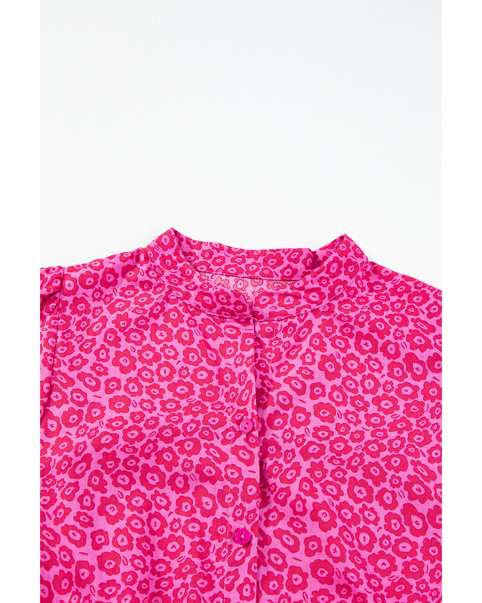 Rose Red Boho Floral V Neck Ruffle Tiered Long Dress - S