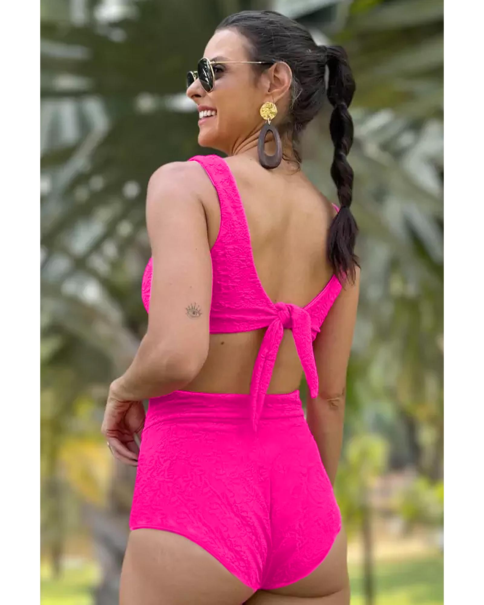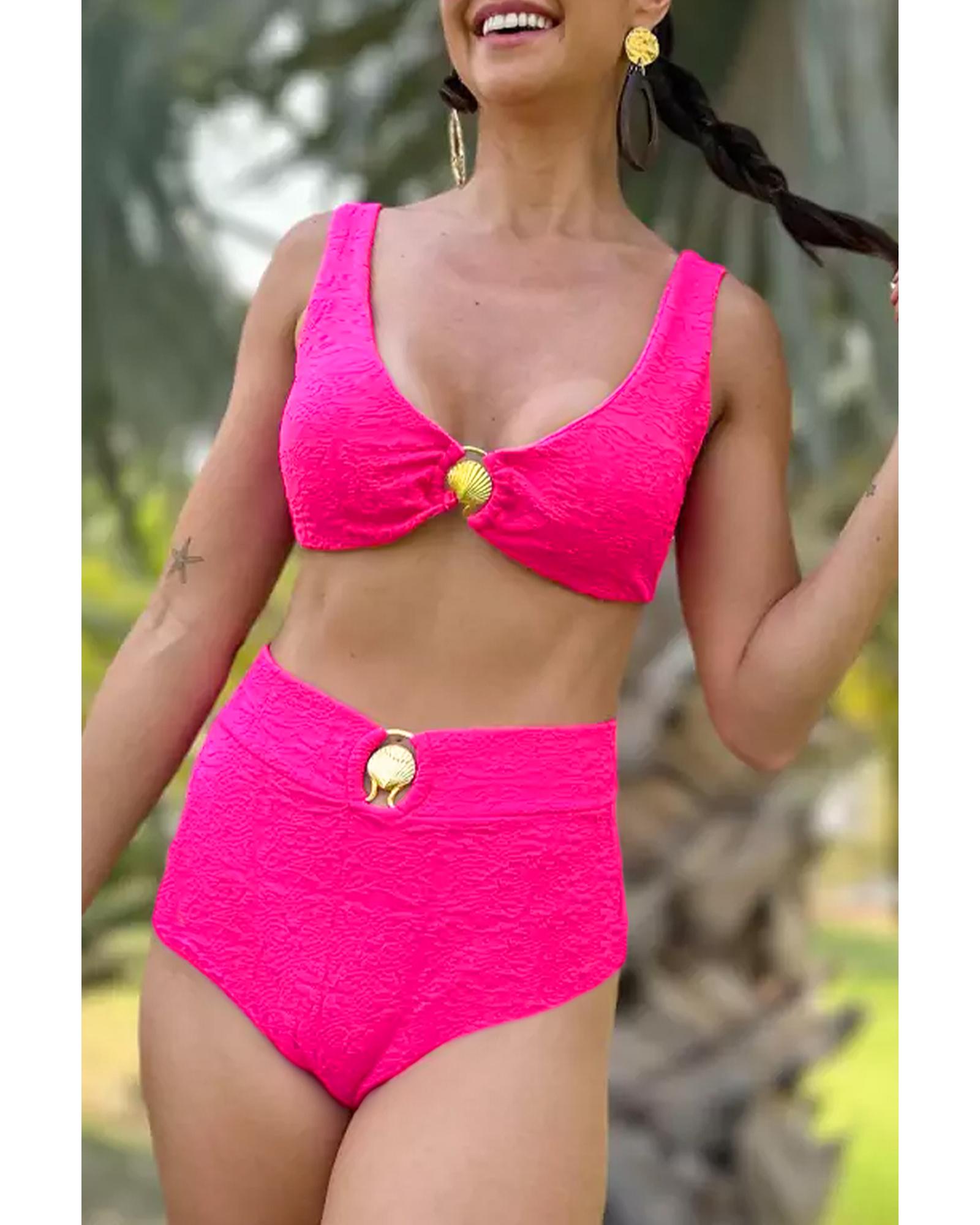 Rose Red Gold Shell Decor Wire-free Knotted 2pcs Bikini Swimsuit - L