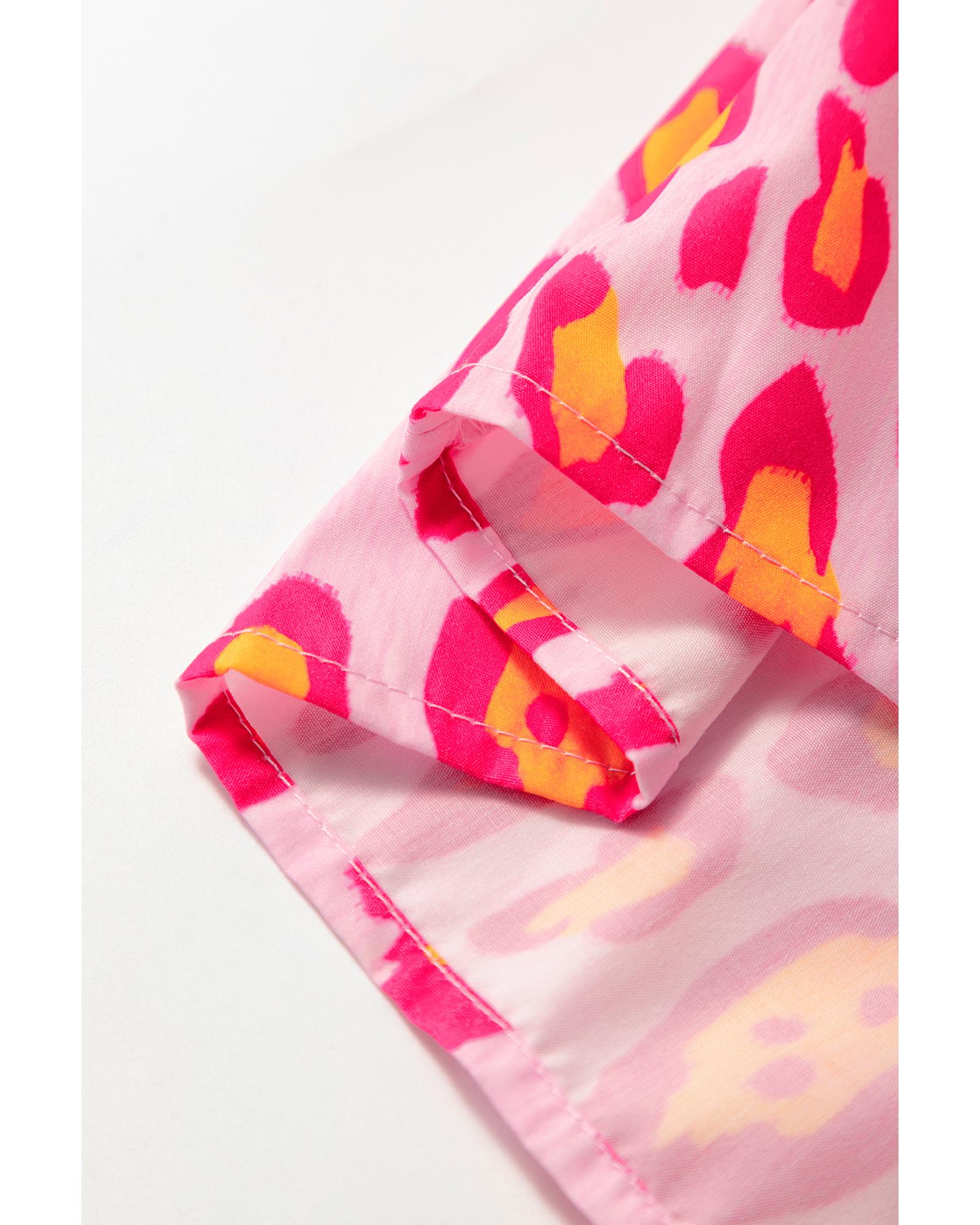 Rose Red Oversized Leopard Print Balloon Sleeve Casual Shirt – XL