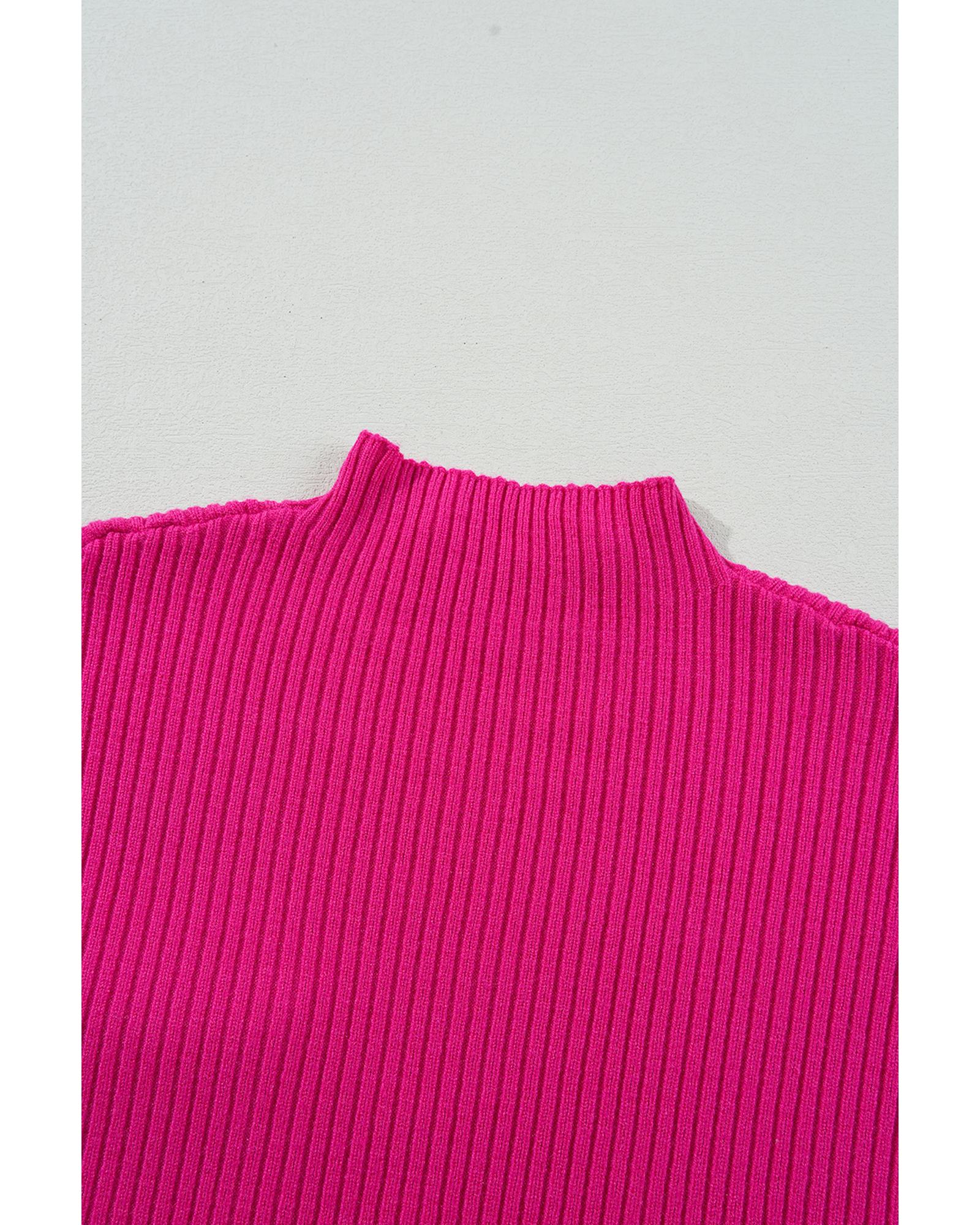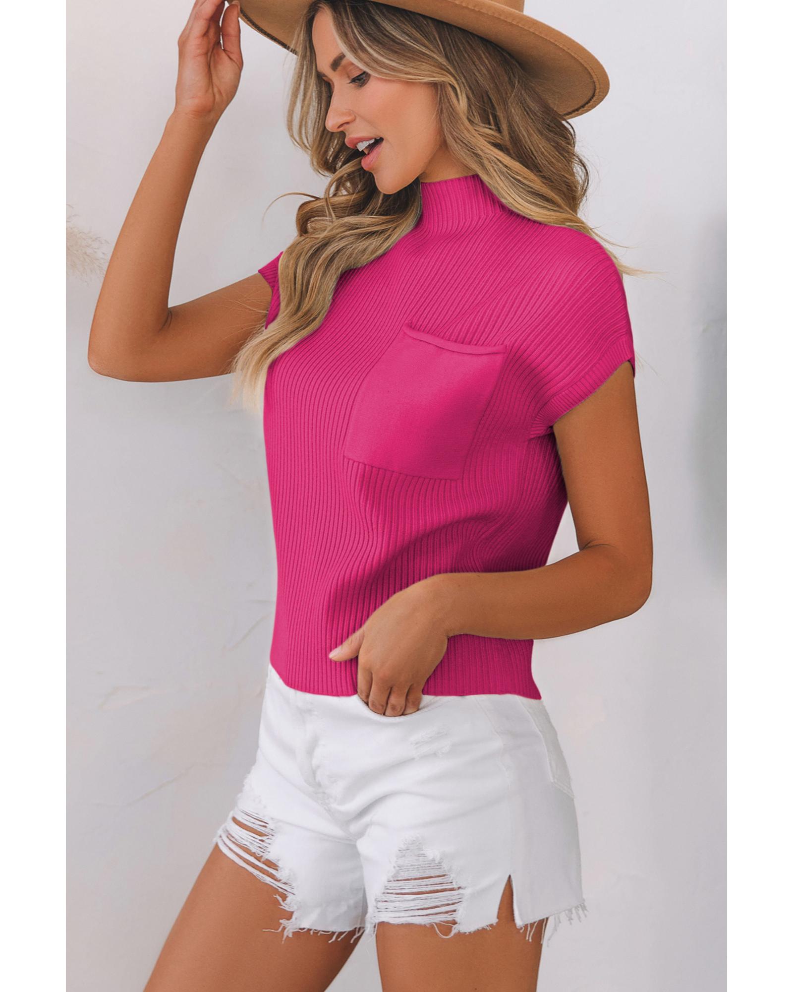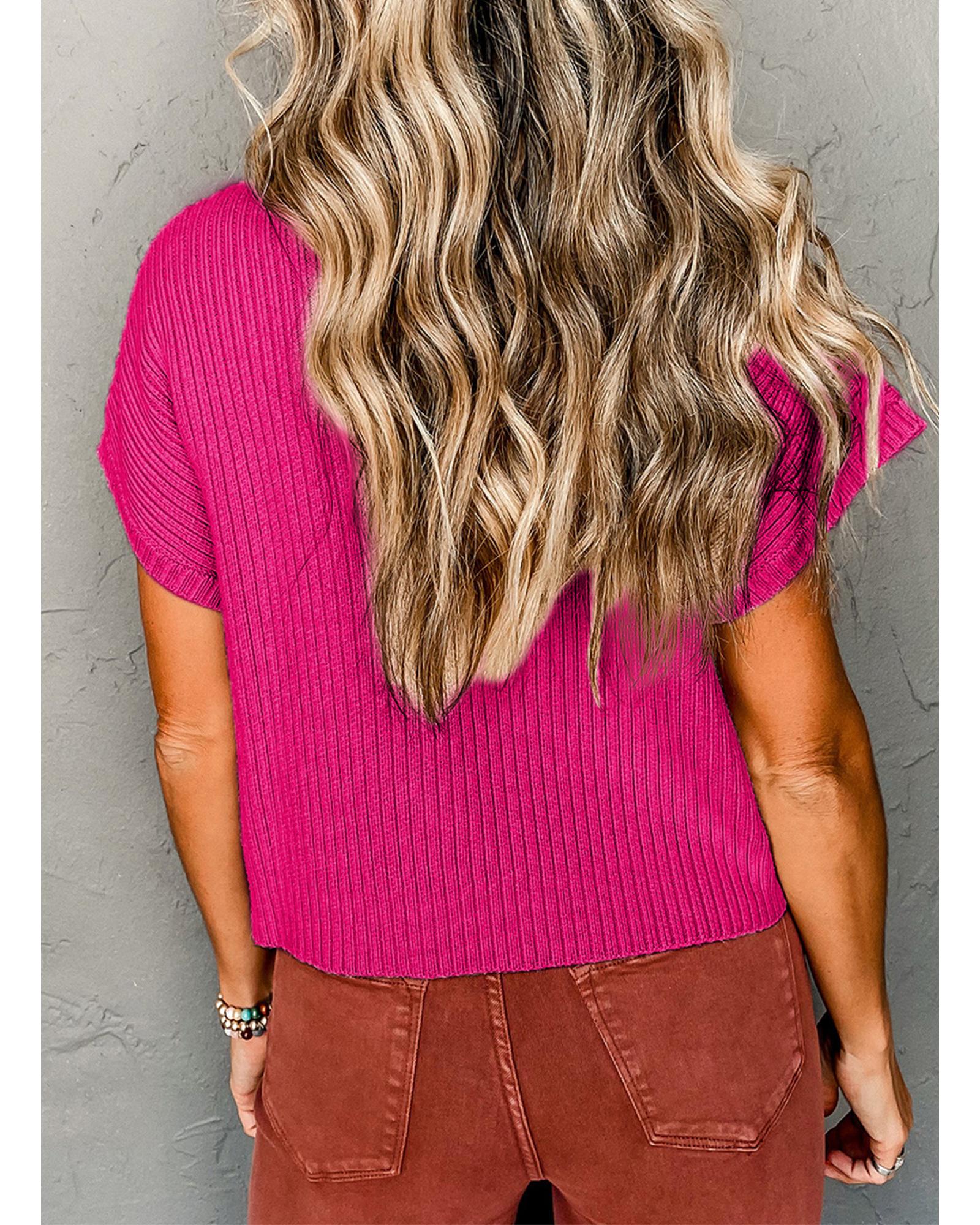 Rose Red Patch Pocket Ribbed Knit Short Sleeve Sweater – 2XL