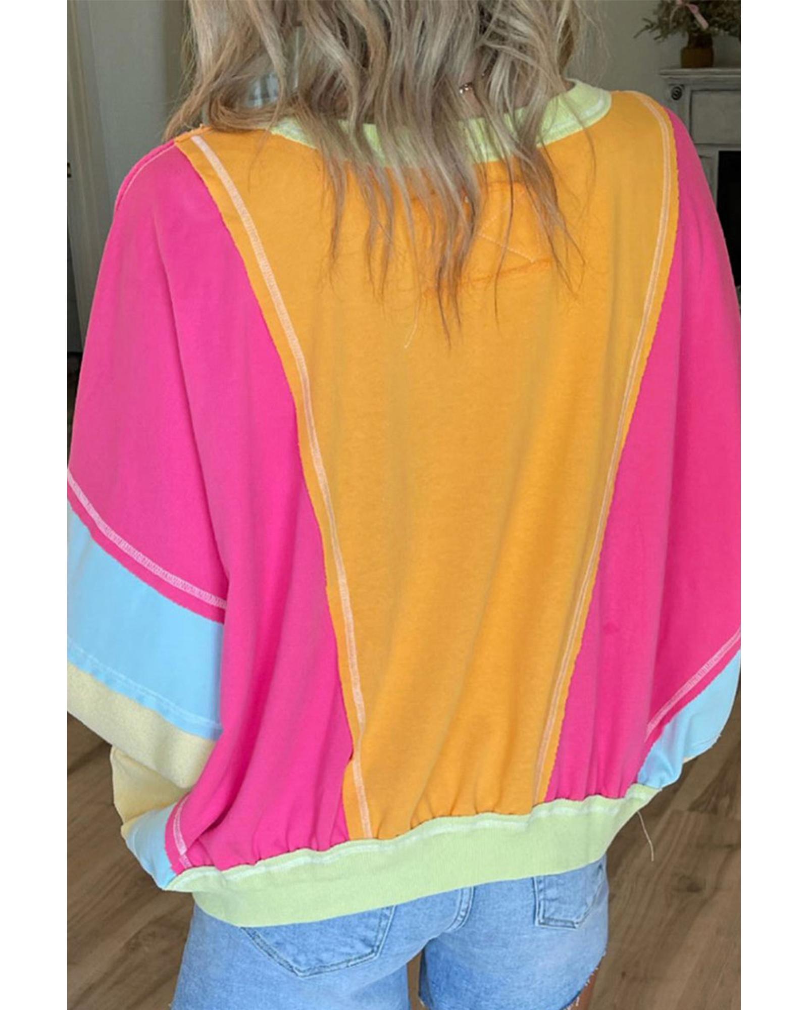 Rose Red Plus Size Colorblock Patchwork Exposed Seam Sweatshirt – 4X