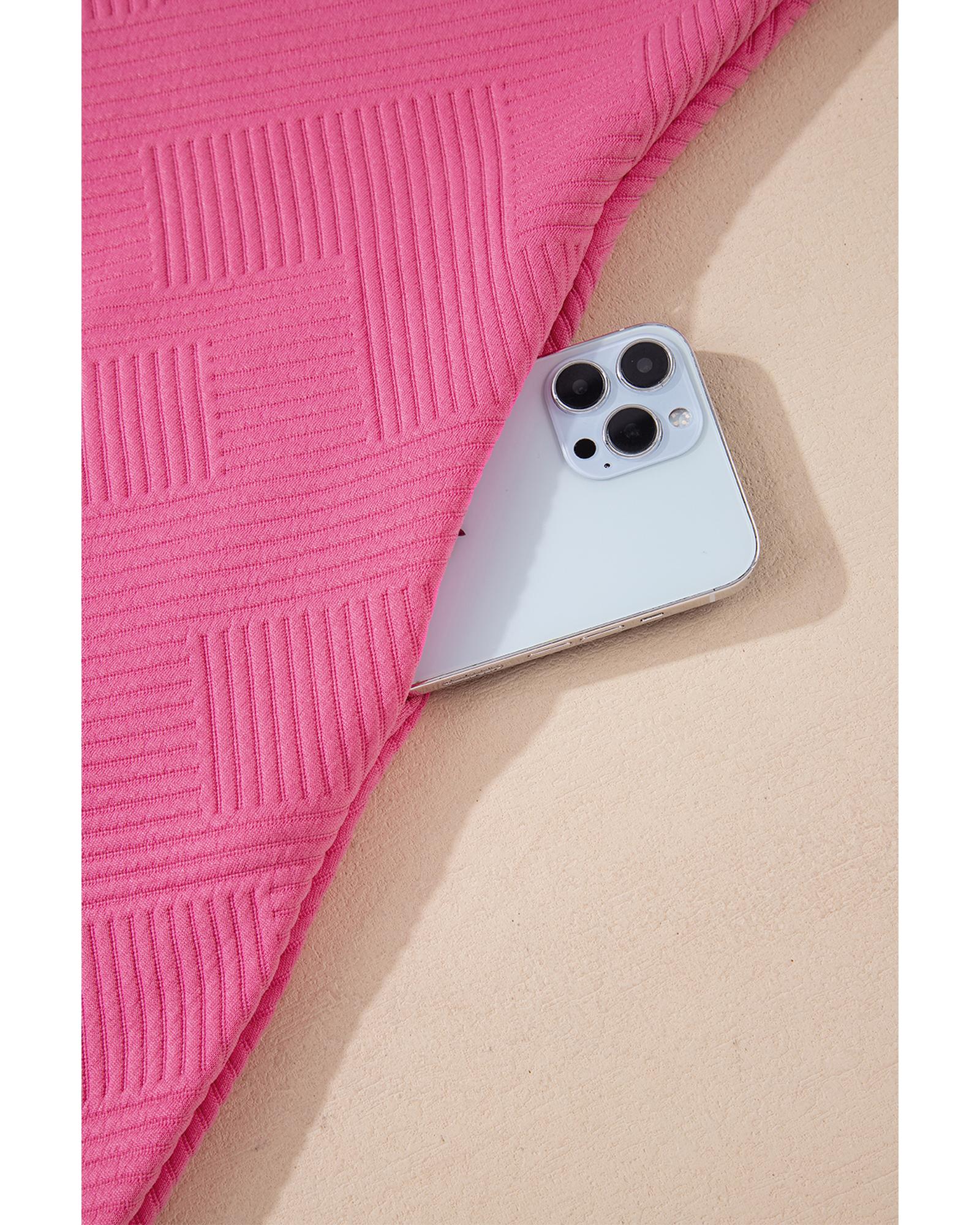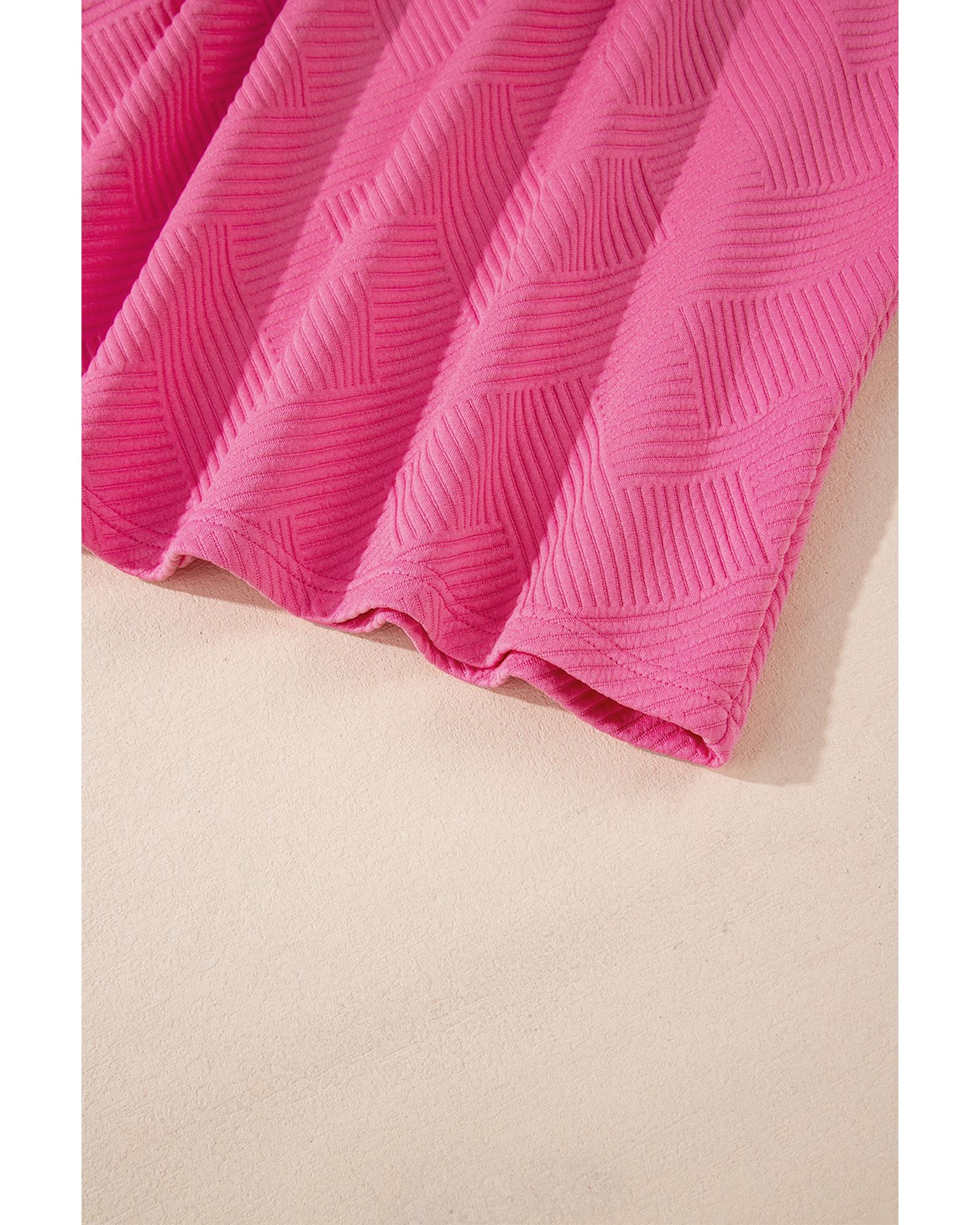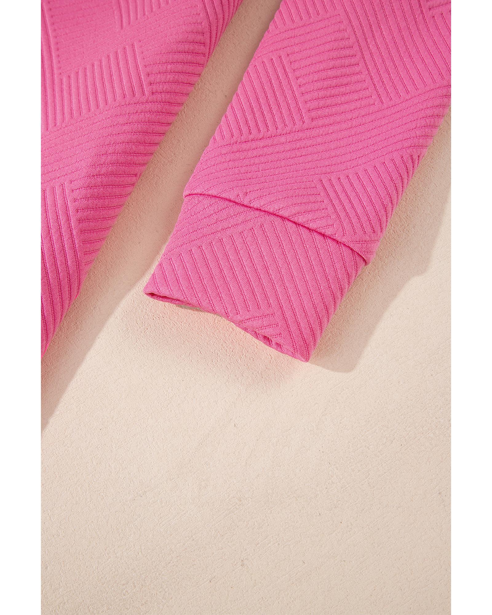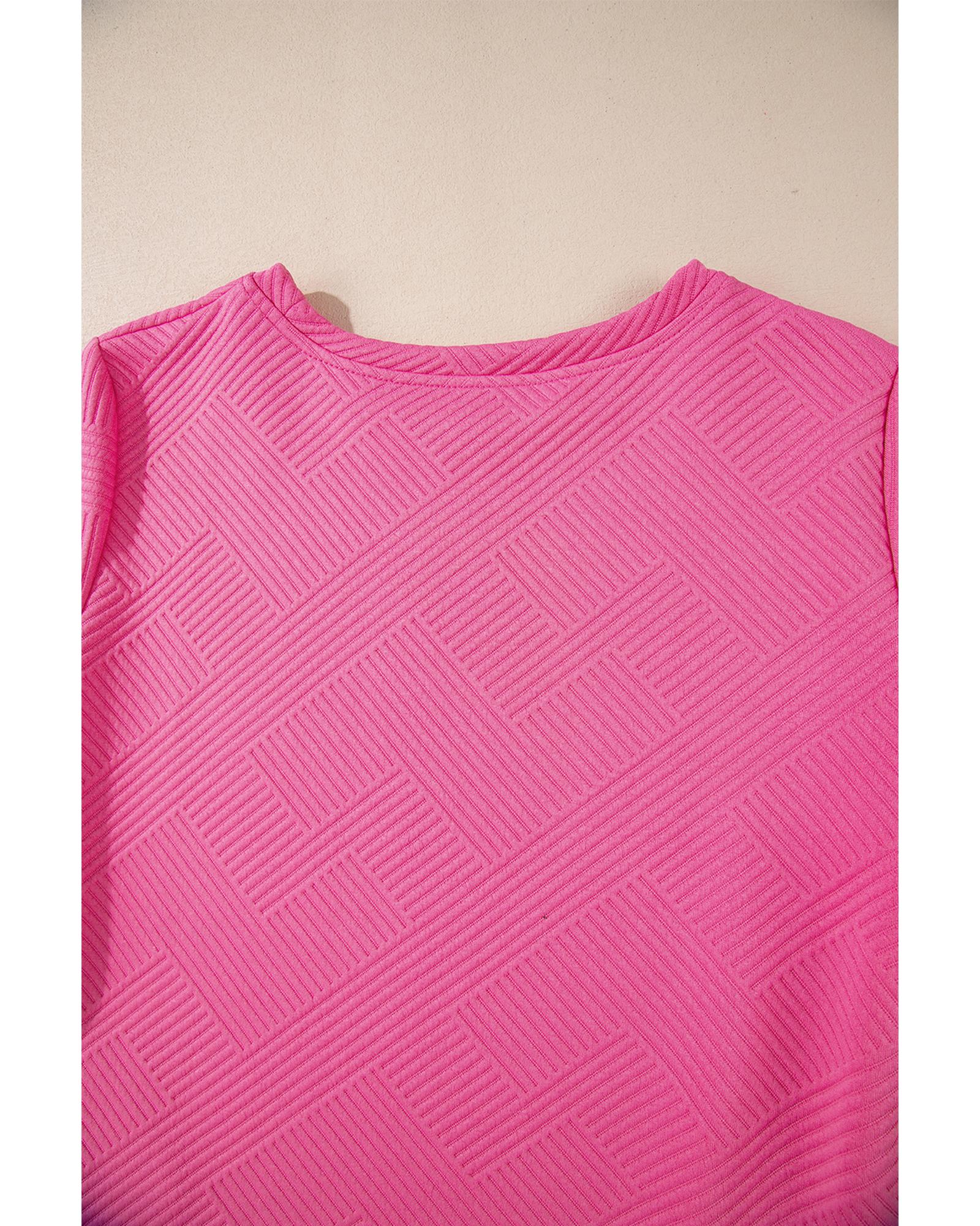 Rose Red Solid Color Textured Long Sleeve Shift Dress – XL