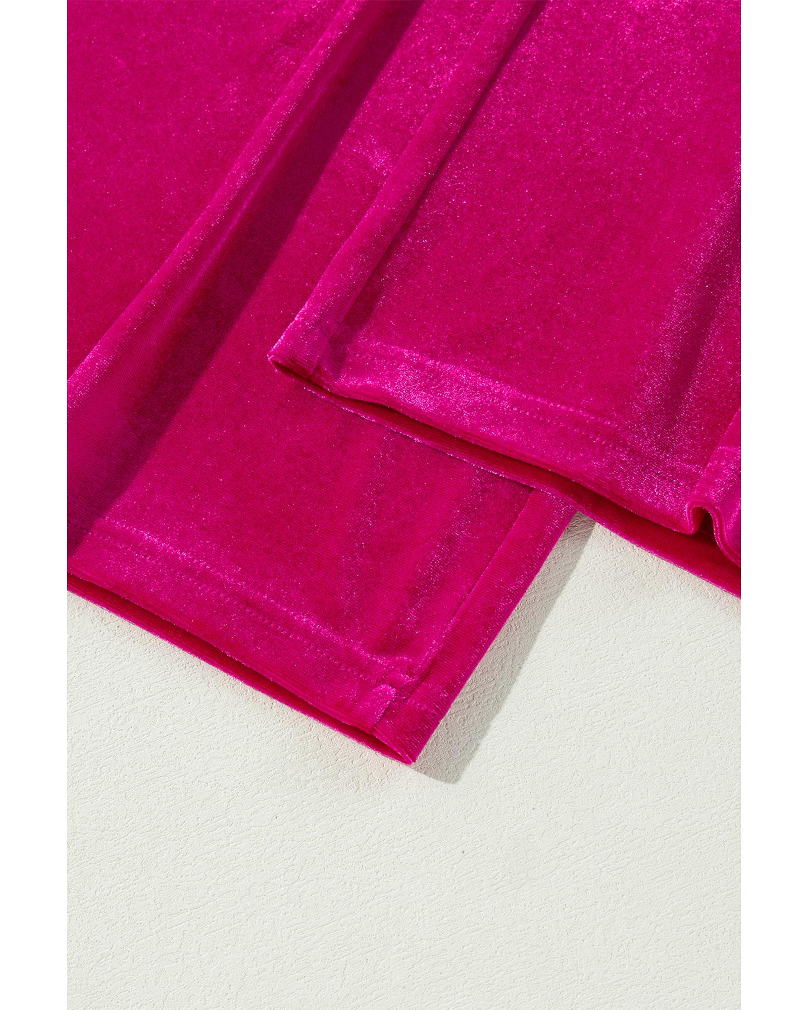Rose Red Solid Velvet Ruffled Two Piece Pants Set – L