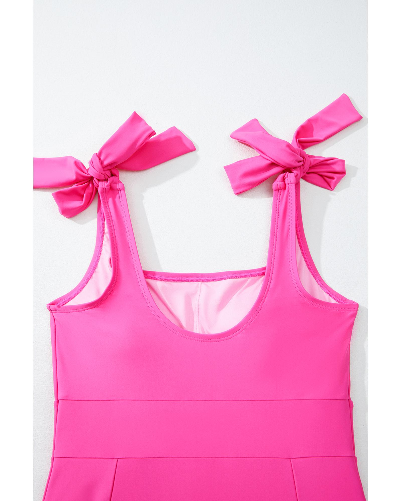 - Rose Red Square Neck Knotted Shoulder Open Back One Piece Swimsuit