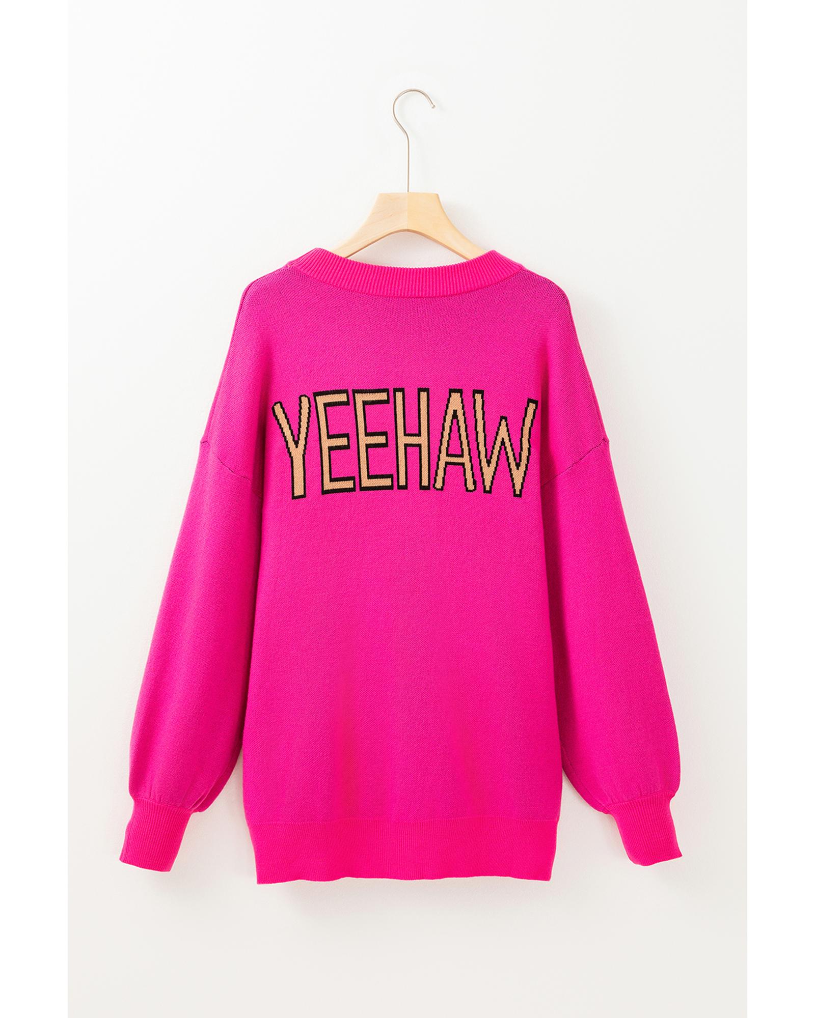Rose Red YEEHAW Cowboy Hat Drop Shoulder Oversized Sweater – L