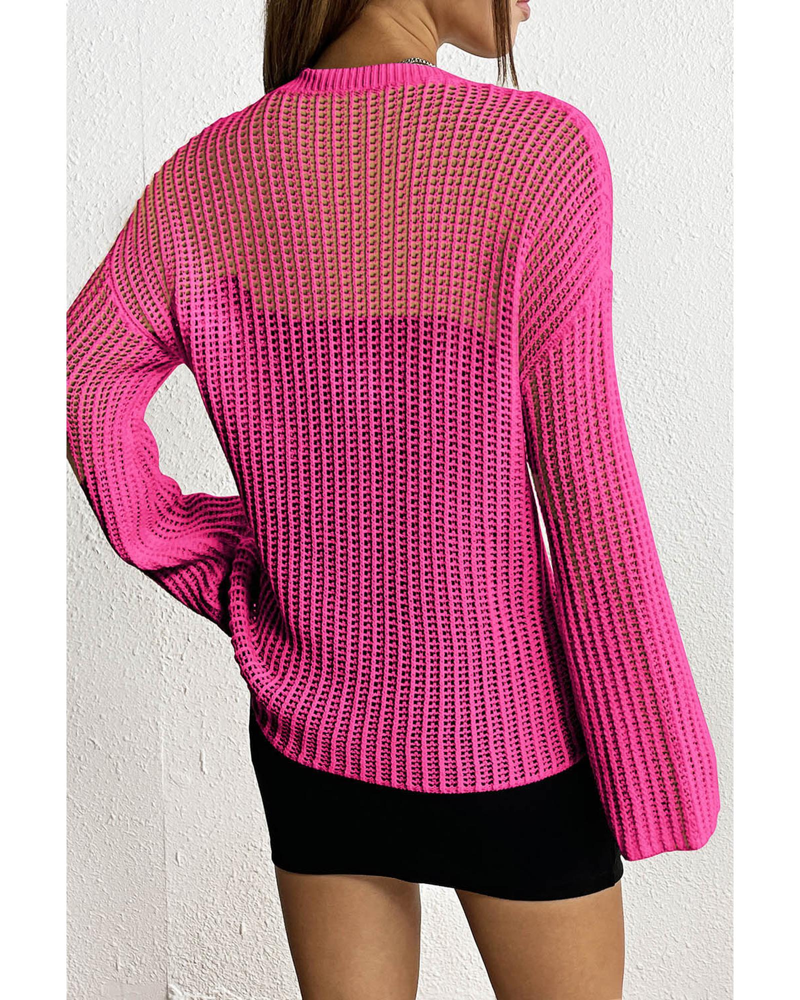 Black Solid Color Slim Fit Lightweight Crew Neck Sweater - L