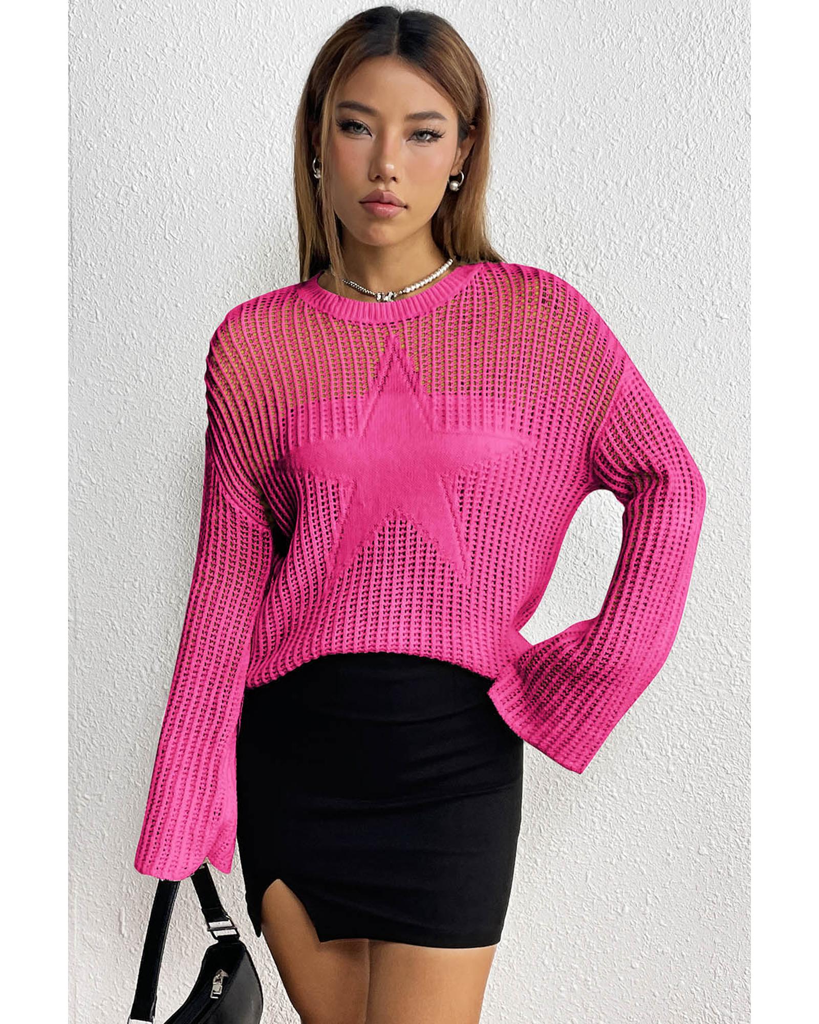Gold Flame Patch Pocket Ribbed Knit Short Sleeve Sweater - XL