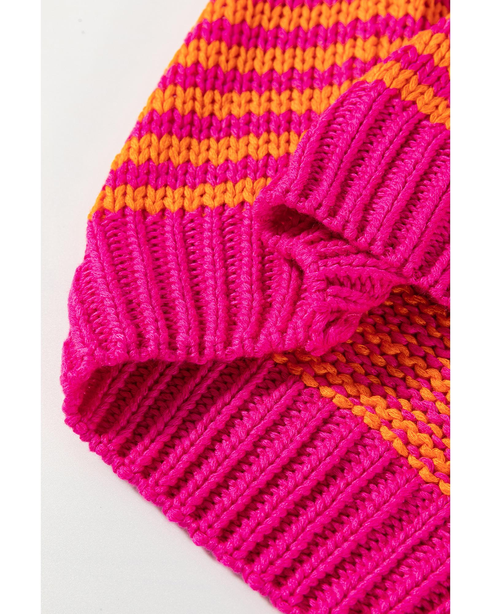 Rose Stripe 3/4 Puff Sleeve Drop Shoulder Sweater – S