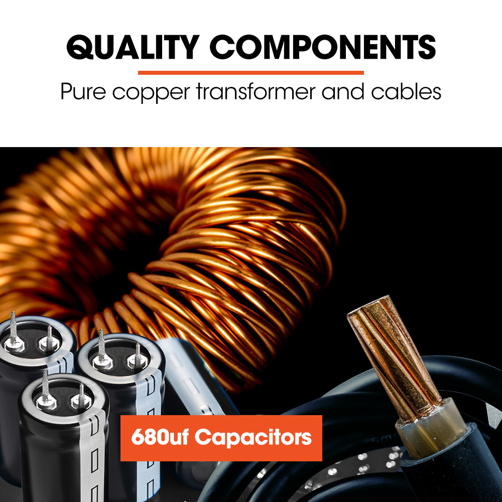 - Powerful inverter producing 98 volts up to 45 amps with fast switching IGBT technology offers improved efficiency and power conversion