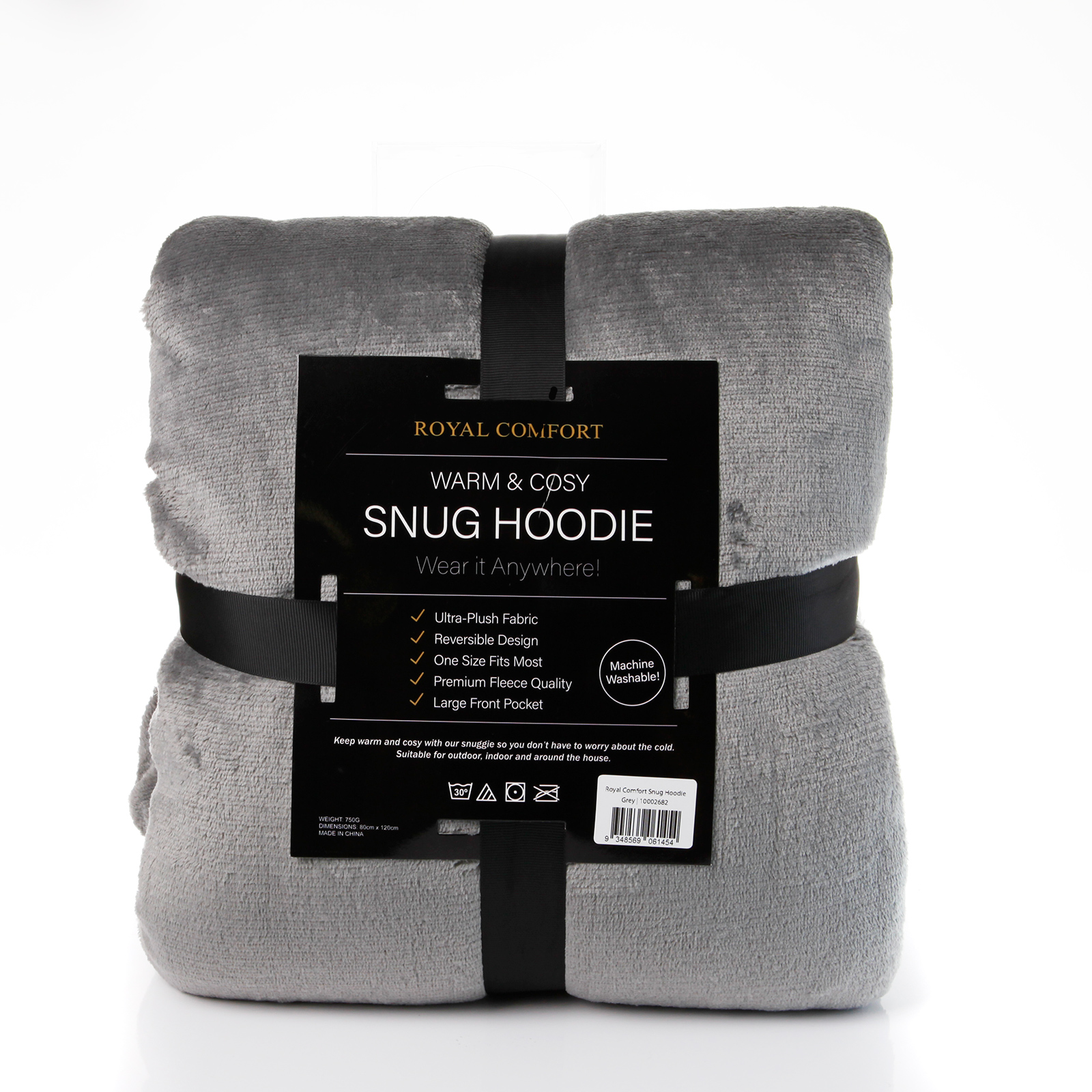 Royal Comfort Snug Hoodie Nightwear Super Soft Reversible Coral Fleece 750GSM – Grey