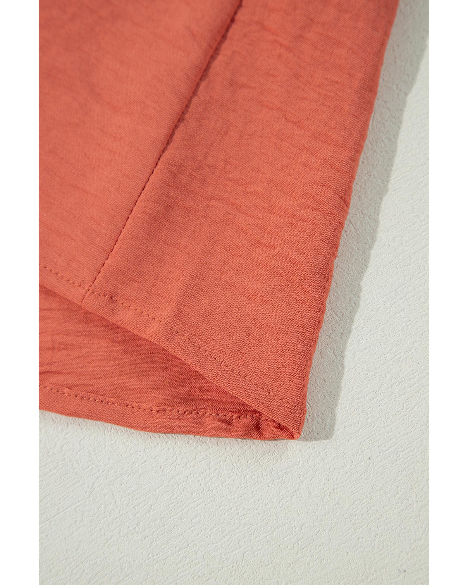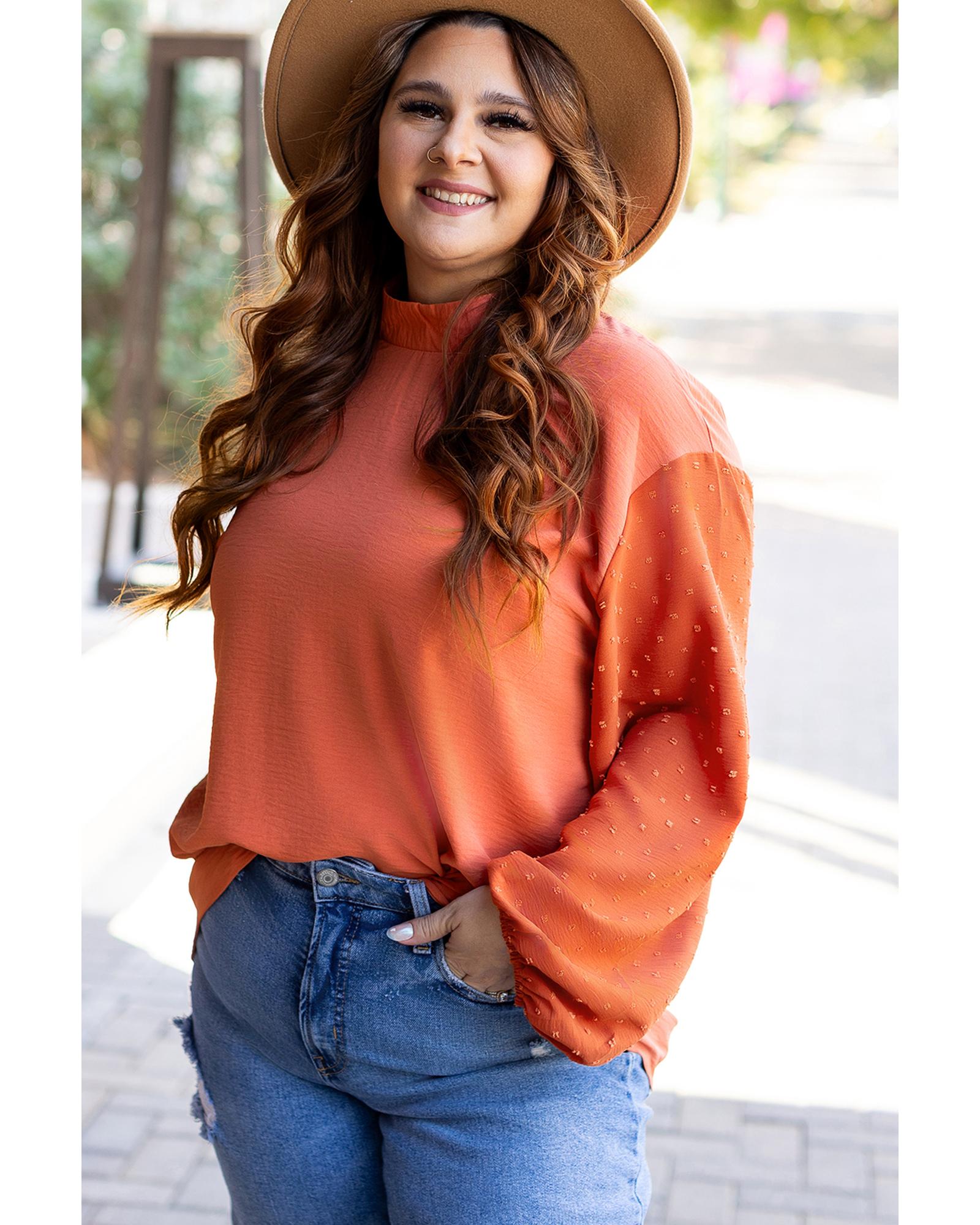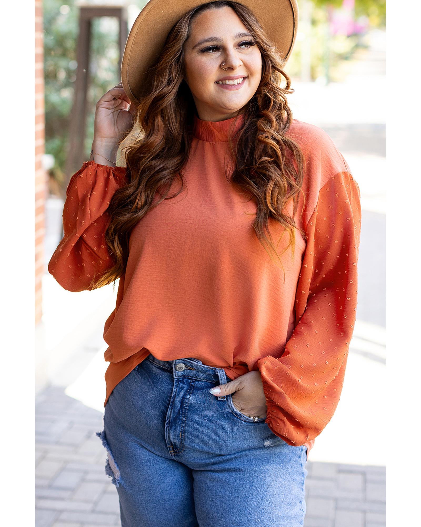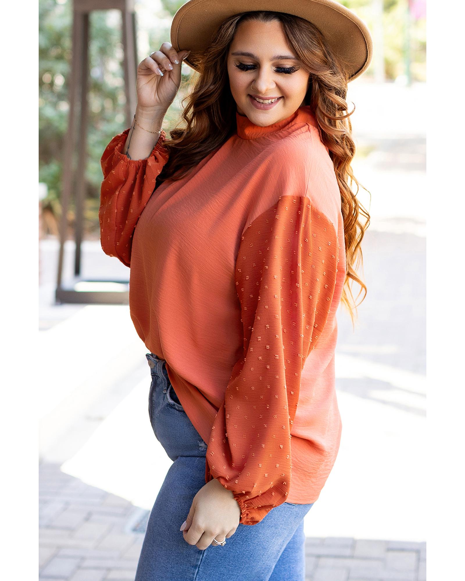- Russet Orange Swiss Dot Balloon Sleeve Loose Blouse